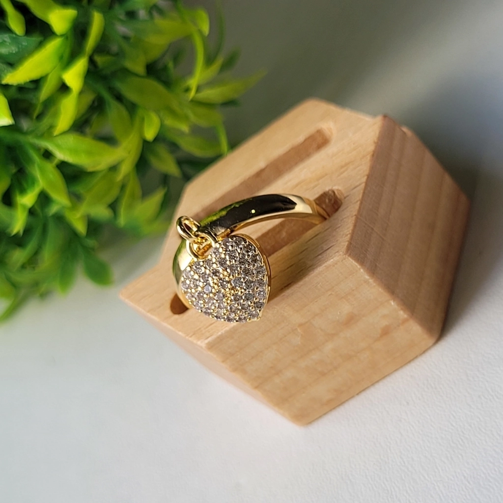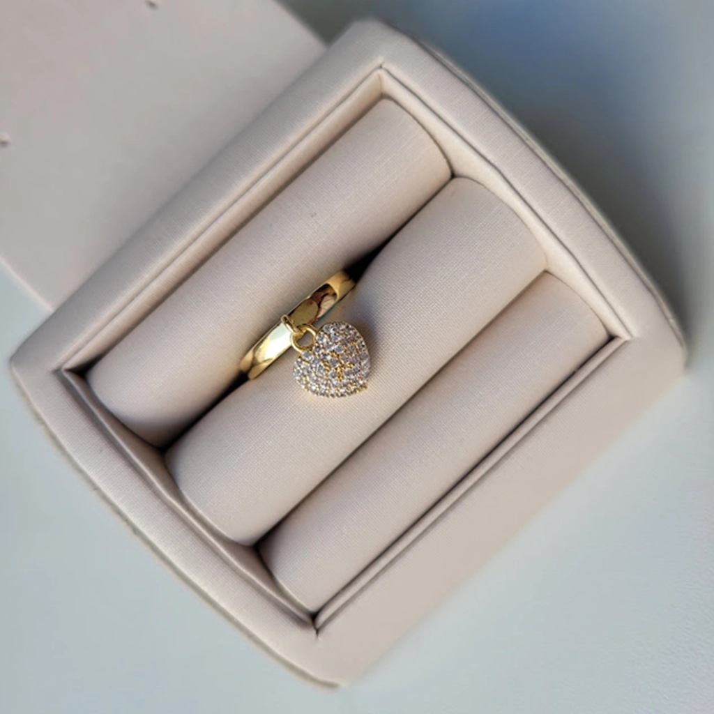 Anel Coração Pendurado Cristal – Banhado a Ouro 18K