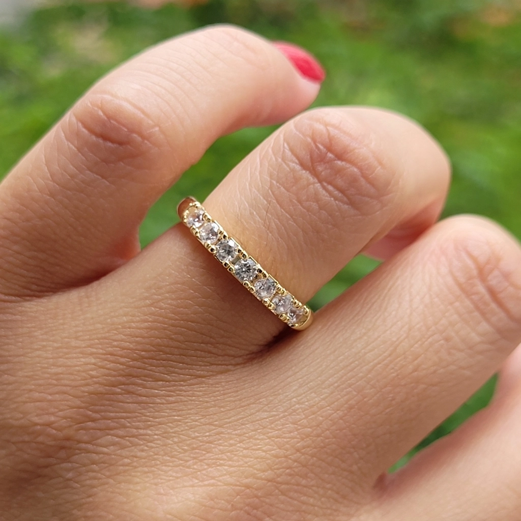 Anel Meia Aliança 1 Fileira Cristal – Banhado a Ouro 18K