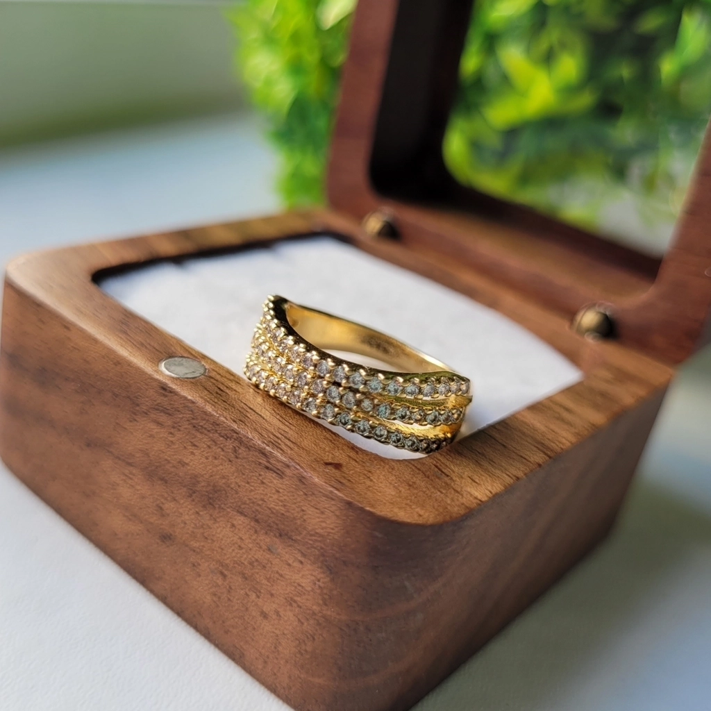 Anel Meia Aliança 3 Fileiras Cristal – Banhado a Ouro 18K