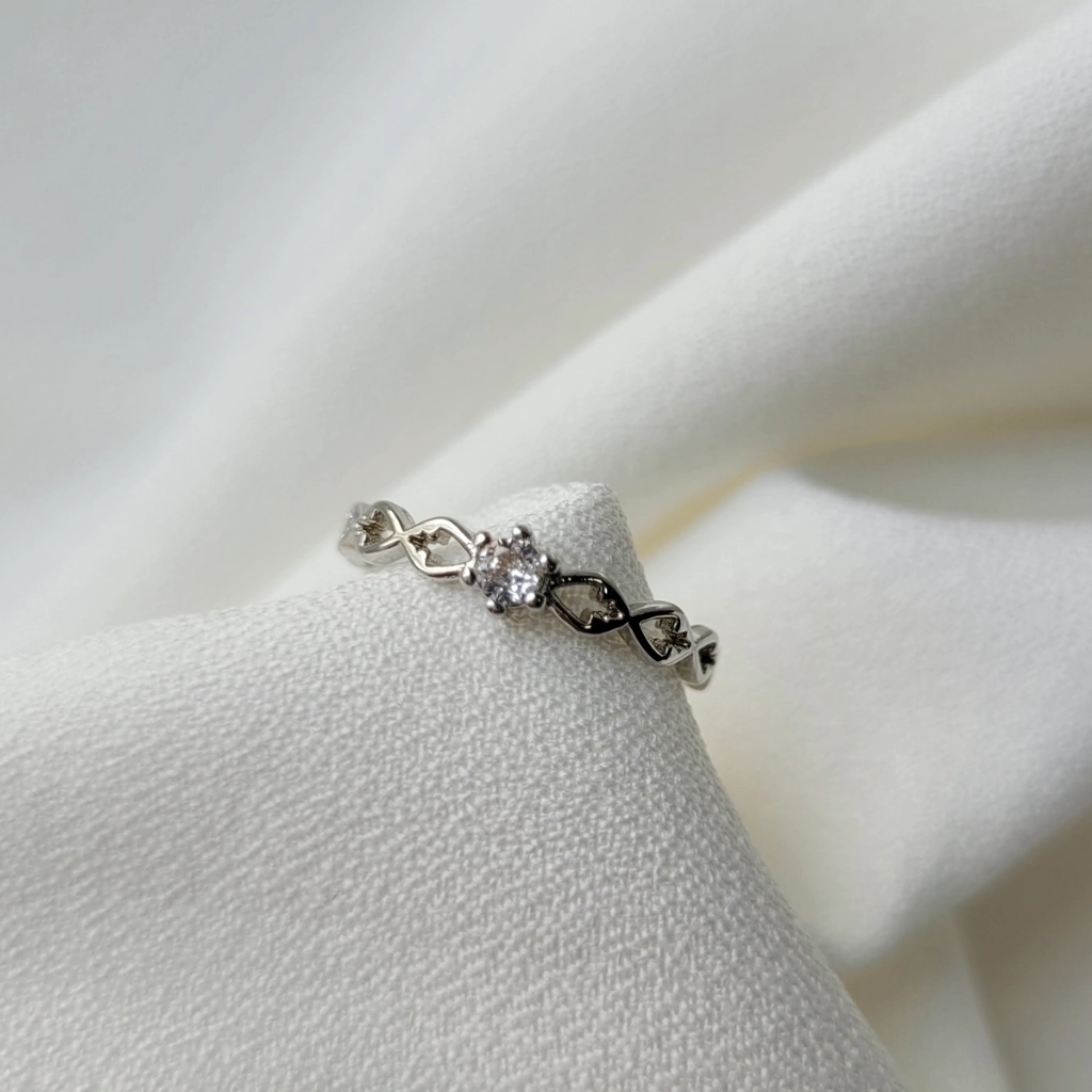 Anel Trançado Cristal – Ródio Branco