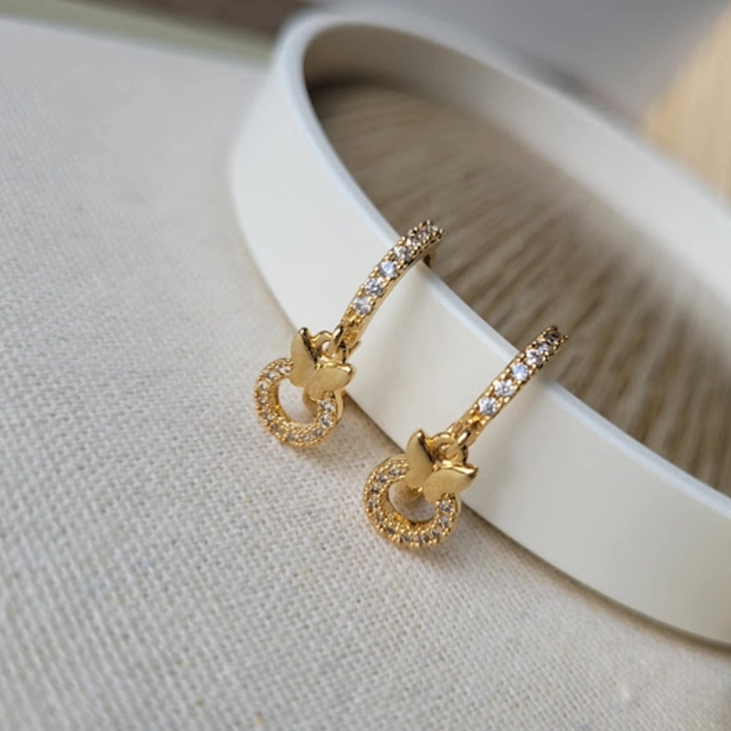 Argola Borboleta e Círculo Cravejado Cristal – Banhado a Ouro 18K