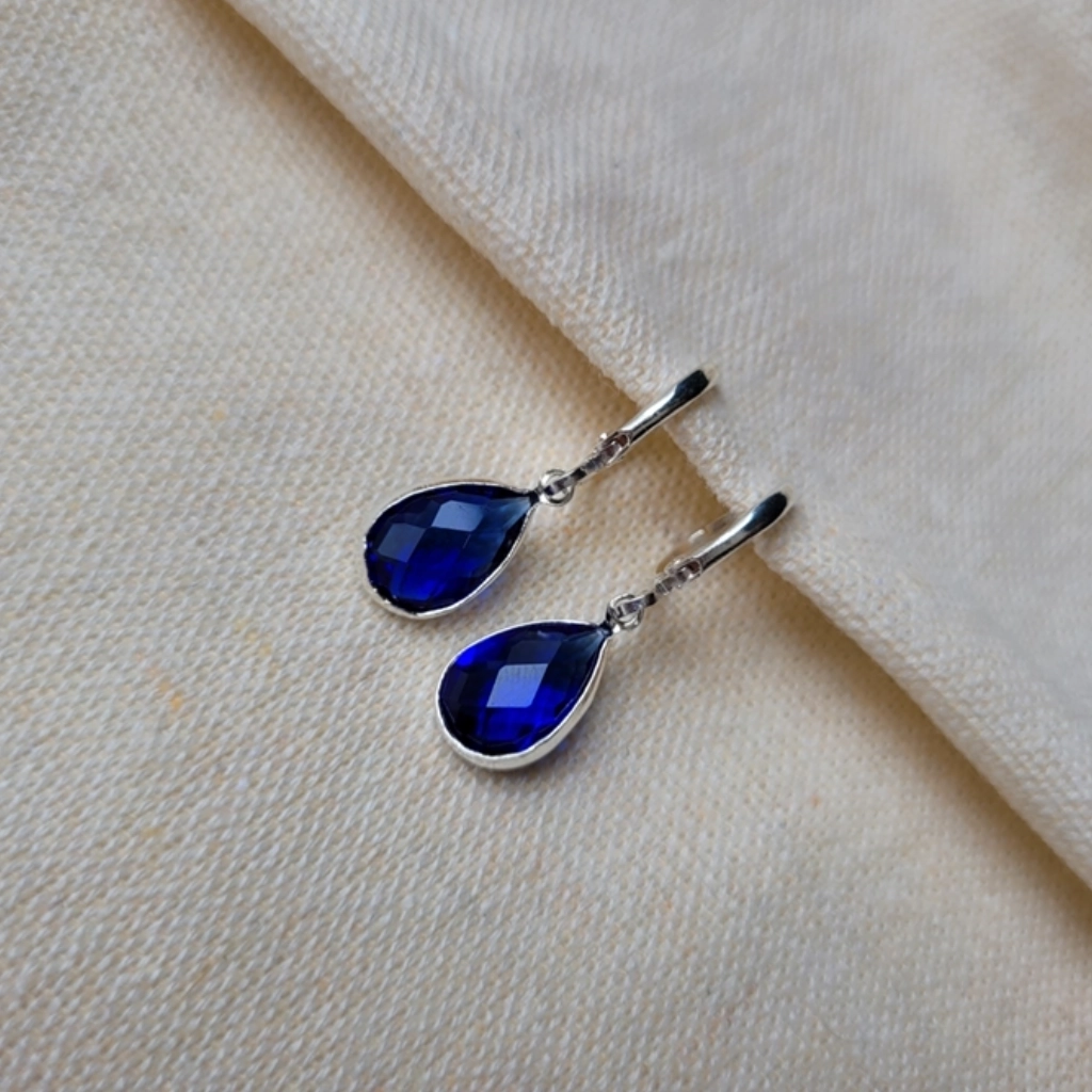 Argola Click Gota Azul Royal – Folheado a Prata