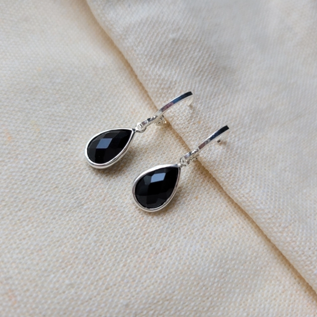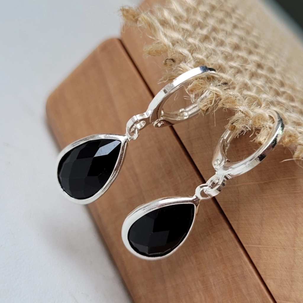 Argola Click Gota Preta – Folheado a Prata