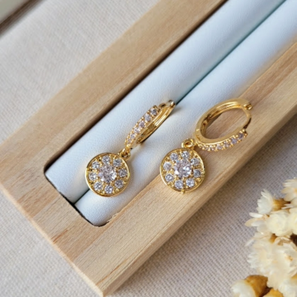 Argola com Esfera Cravejada Cristal – Banhado a Ouro 18K
