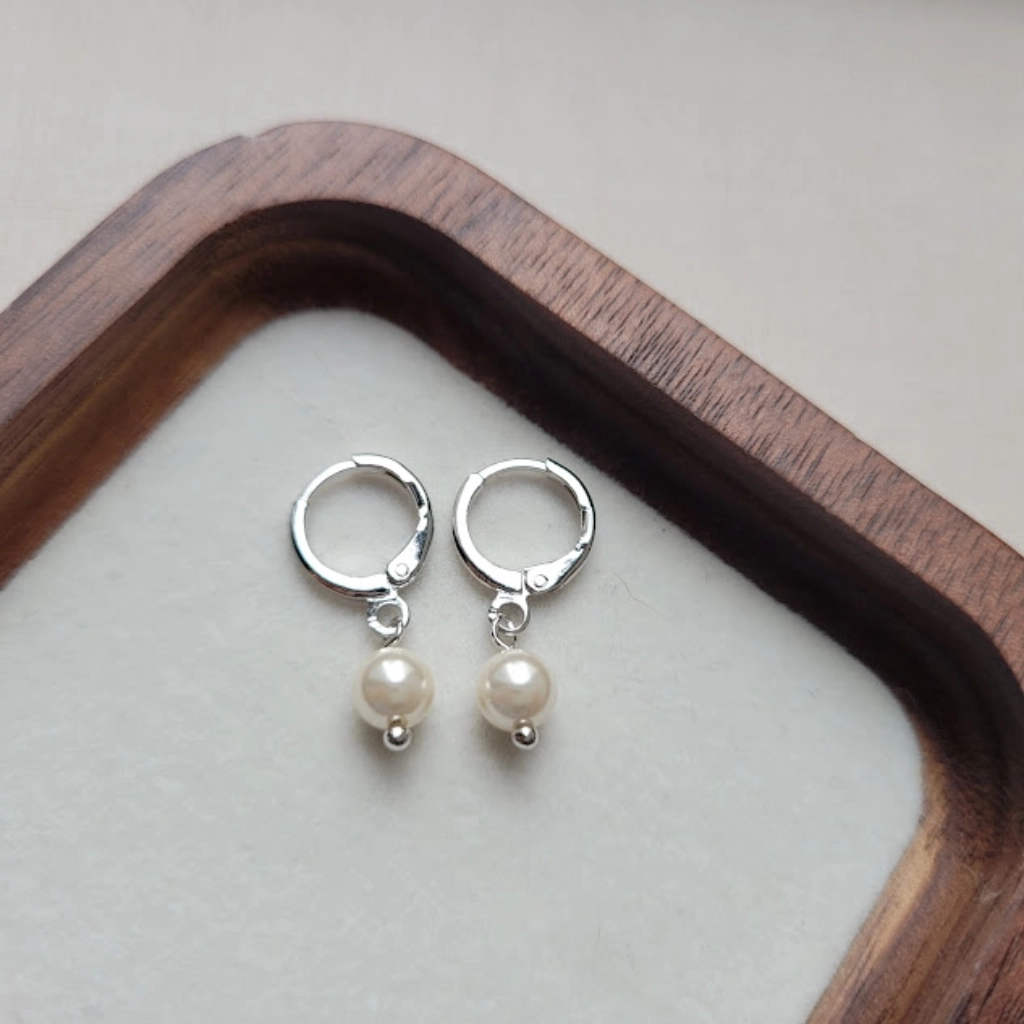 Argola com Pingente Pérola – Ródio Branco