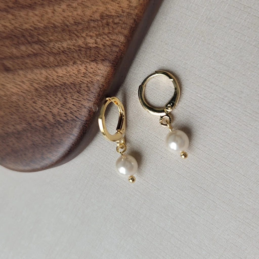 Argola com Pingente Pérola – Banhado a Ouro 18K