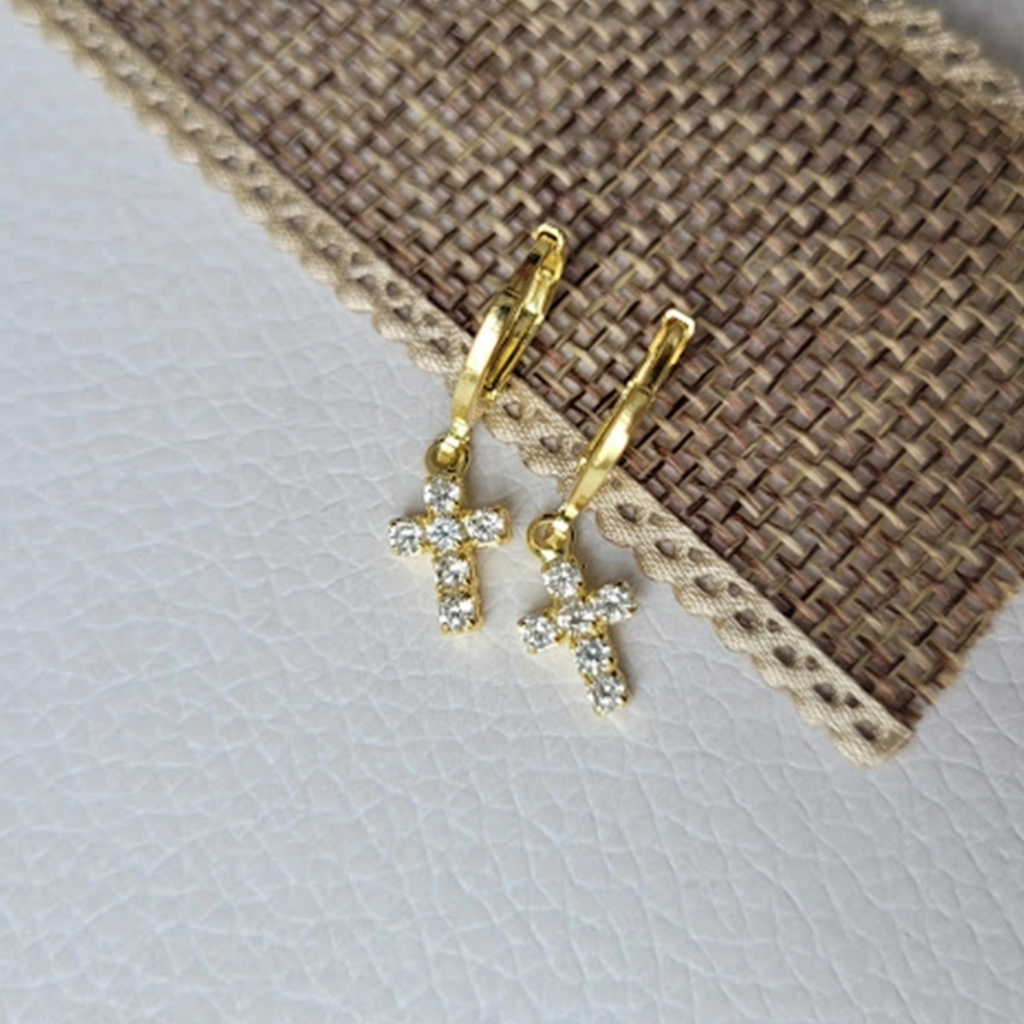 Argola Cruz Cravejada Cristal – Banhado a Ouro 18K