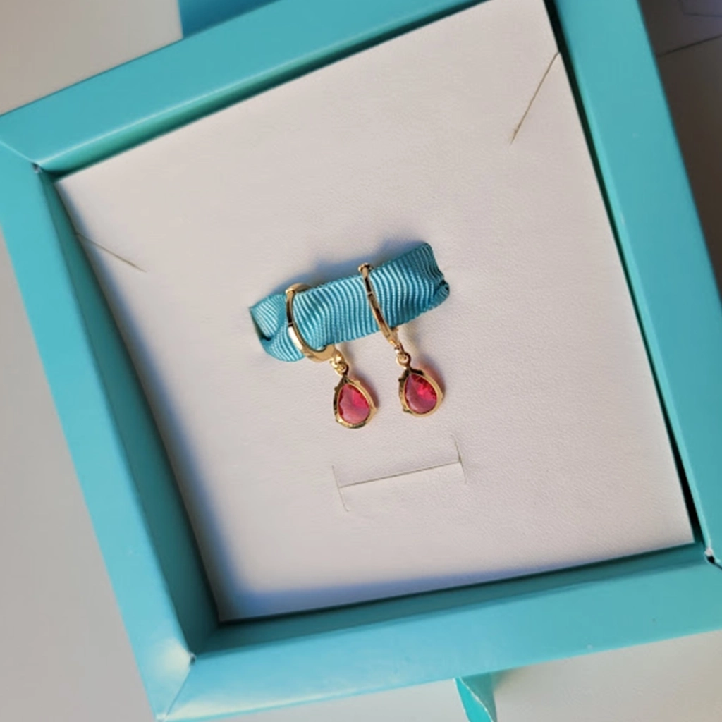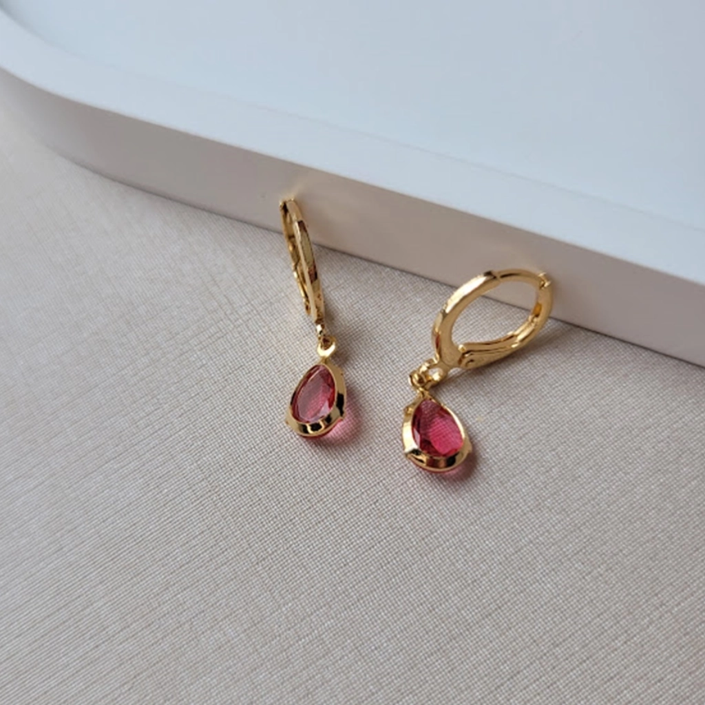 Argola Gota Fúcsia – Banhado a Ouro 18K