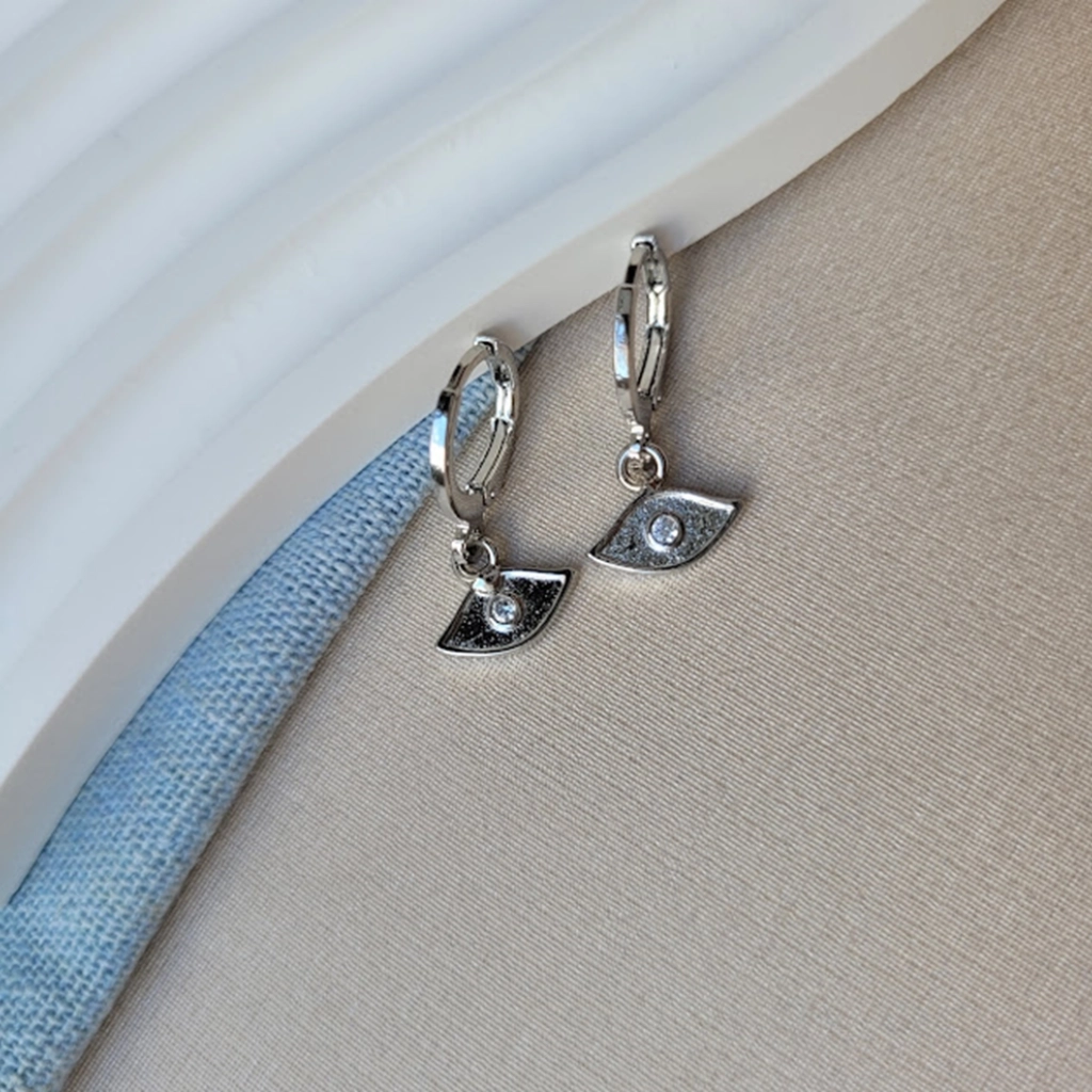 Argola Olho Grego com Ponto de Luz – Ródio Branco