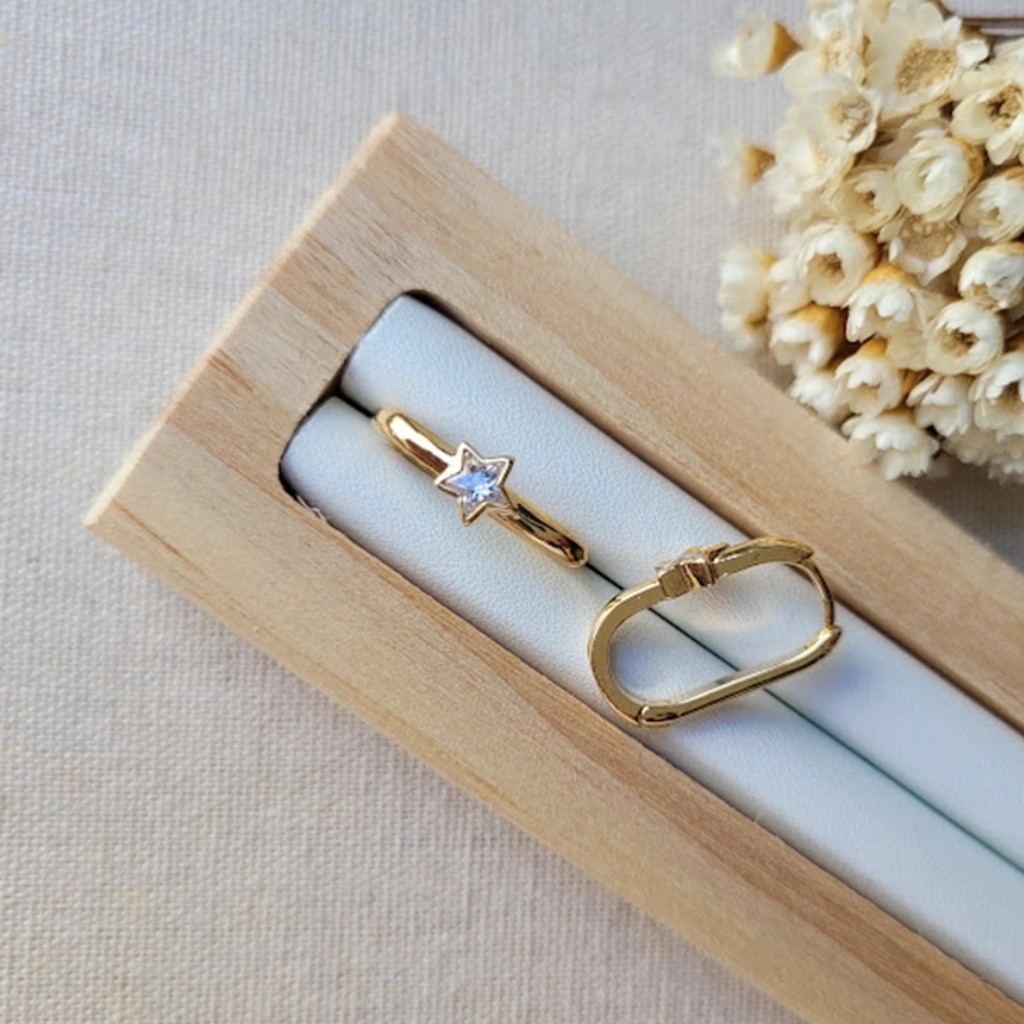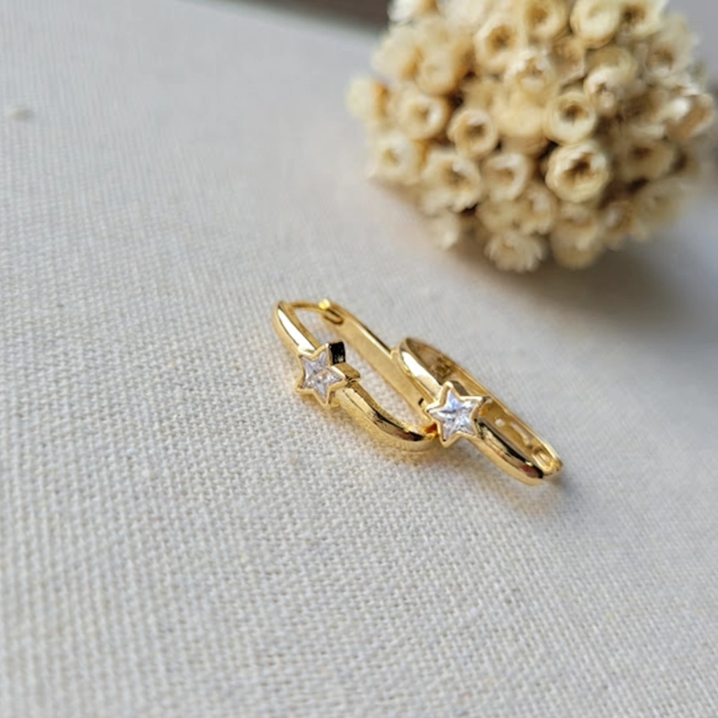 Argola Tubular com Estrela Cristal – Banhado a Ouro 18K