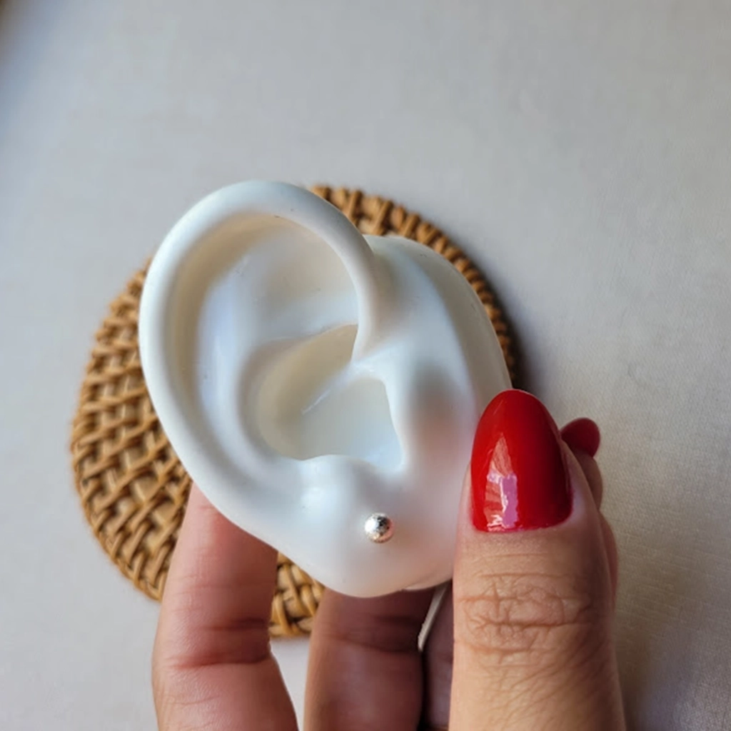 Brinco Bolinha Craquelada – Folheado a Prata