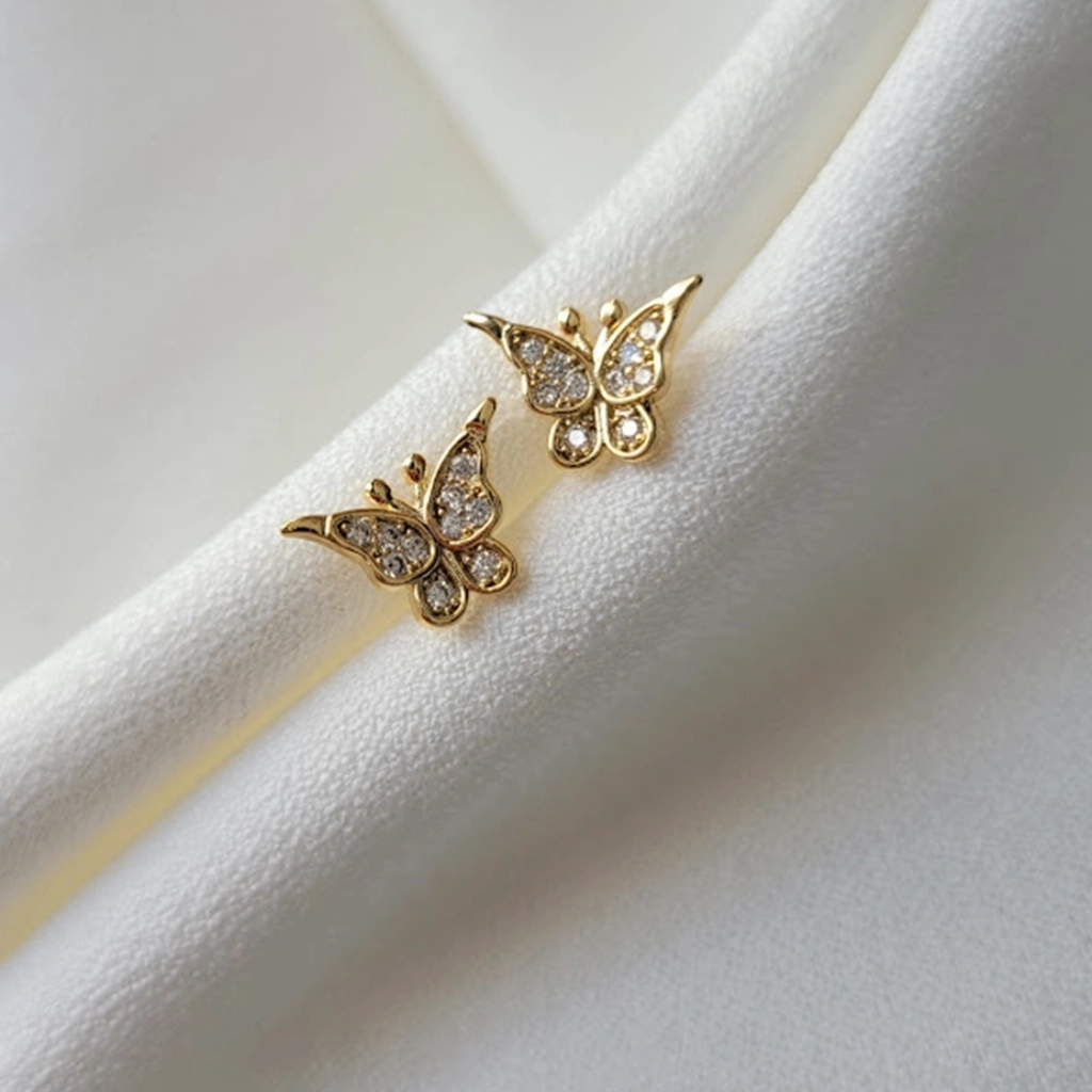Brinco Borboleta Cristal – Banhado a Ouro 18K