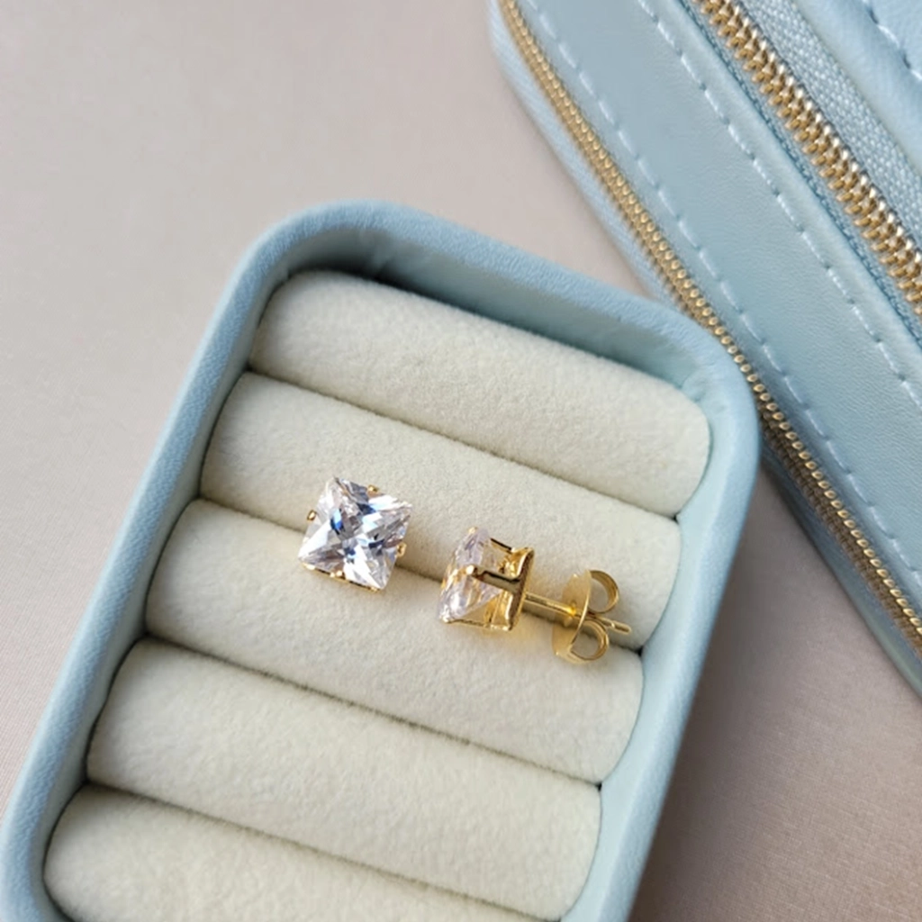 Brinco Carré Quadrado Cristal – Banhado a Ouro 18K
