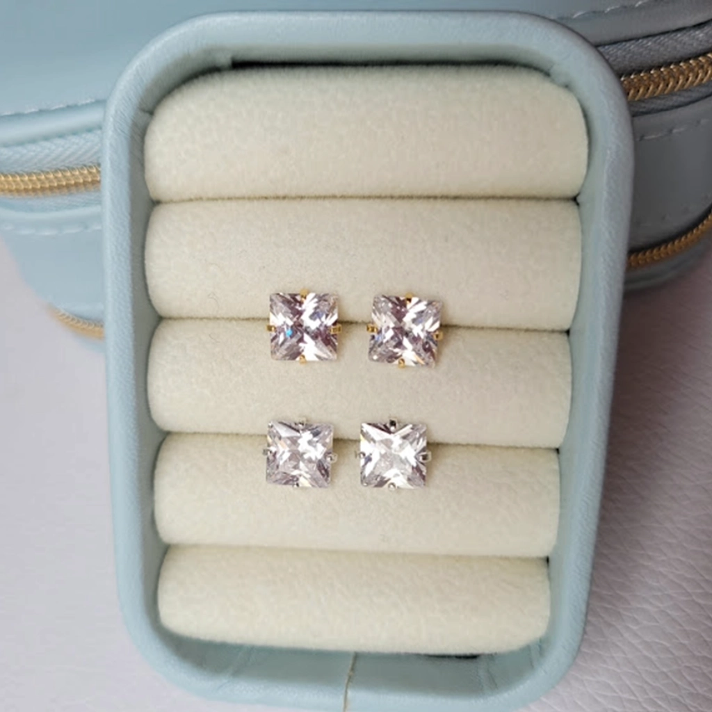 Brinco Carré Zircônia Cristal – Folheado a Prata