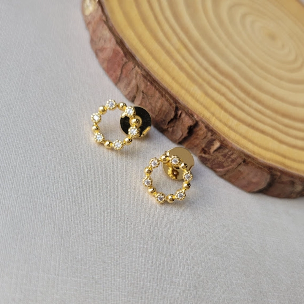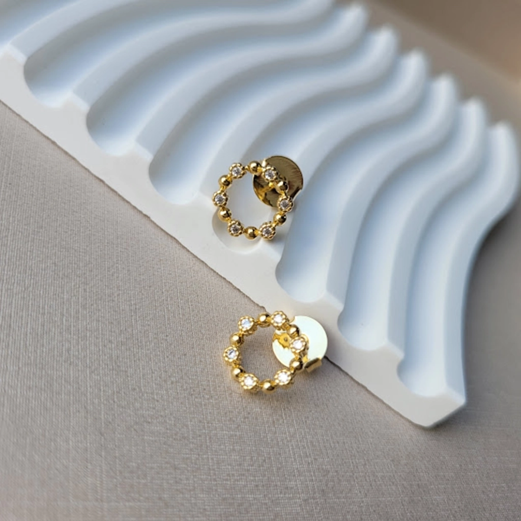 Brinco Círculo com Bolinhas e Pontos de Luz – Banhado a Ouro 18K