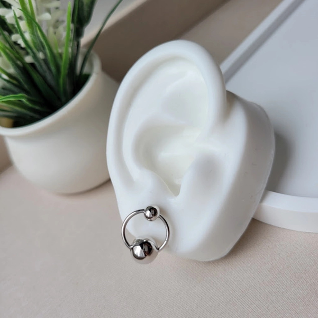 Brinco Círculo com Dupla Bolinhas