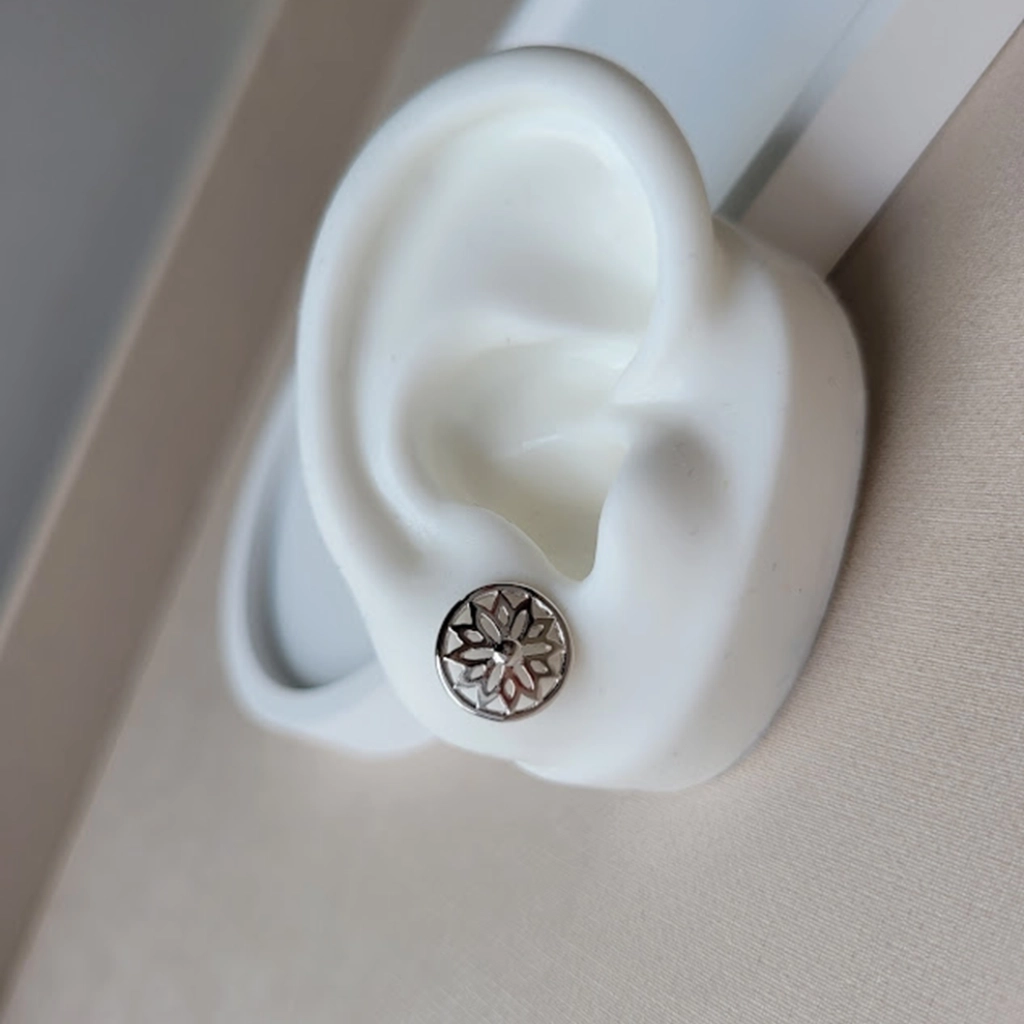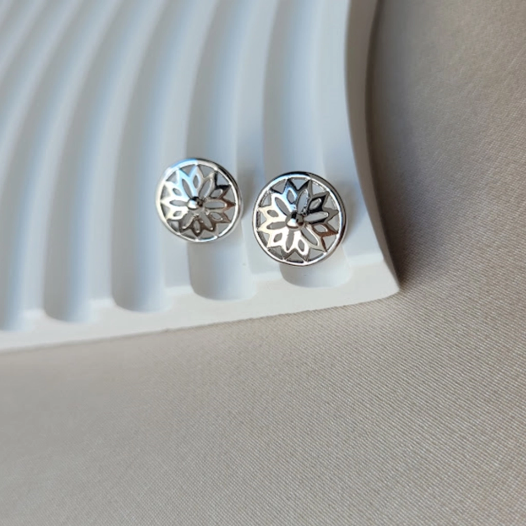 Brinco Círculo com Flor Vazada – Ródio Branco