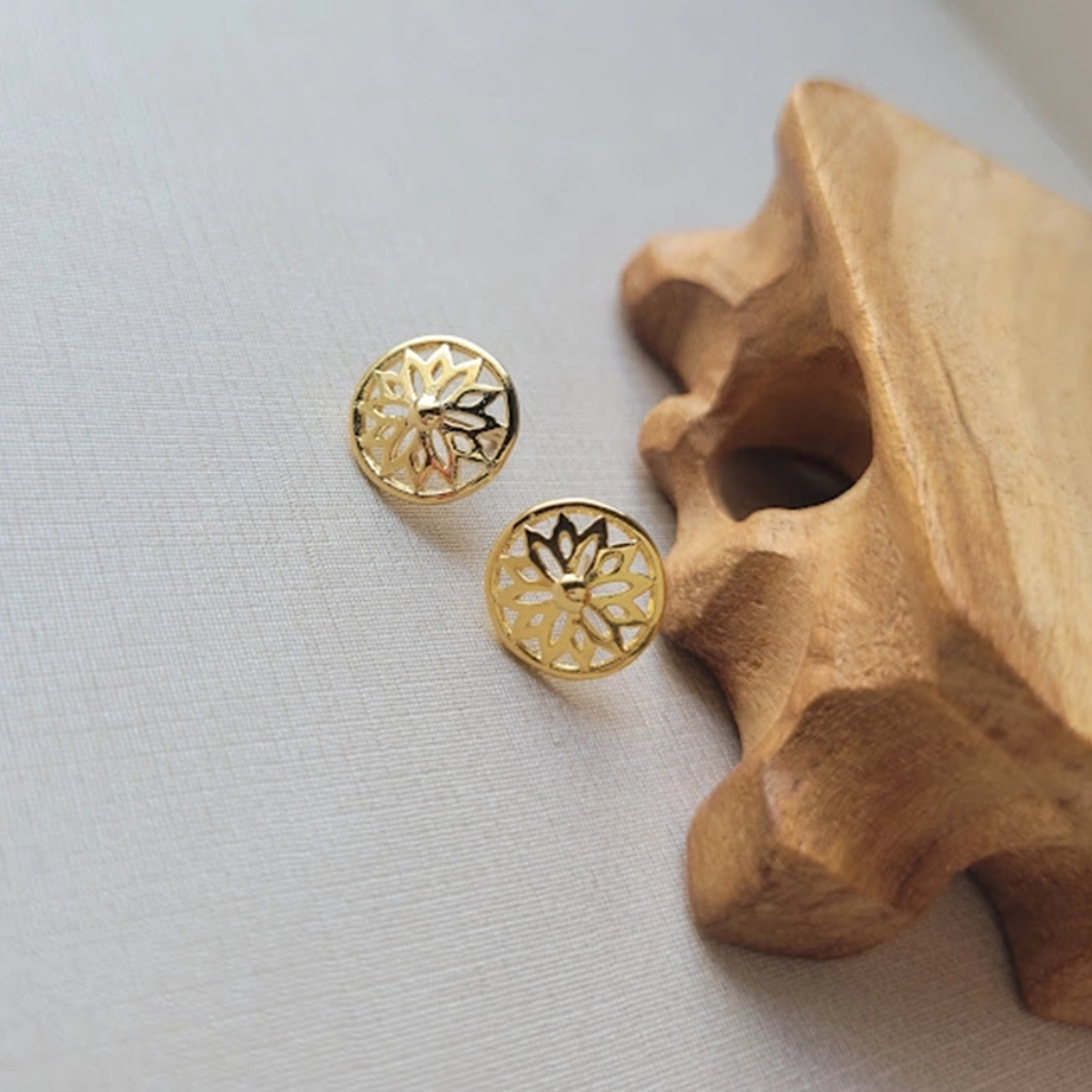 Brinco Círculo com Flor Vazada – Banhado a Ouro 18K