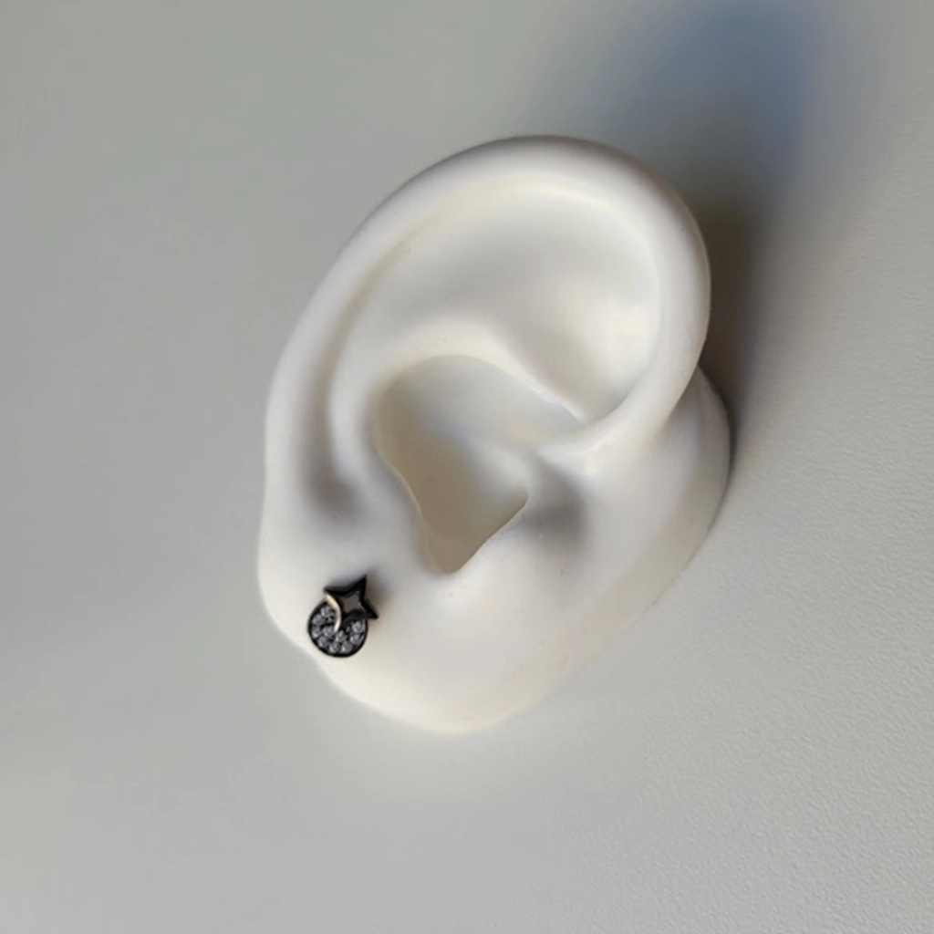 Brinco Círculo Cravejado e Estrela – Ródio Negro