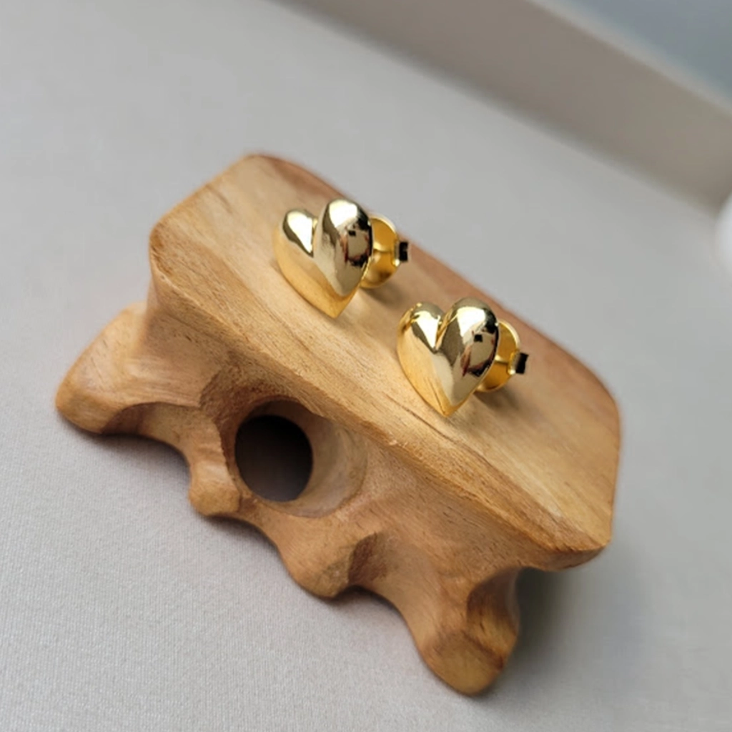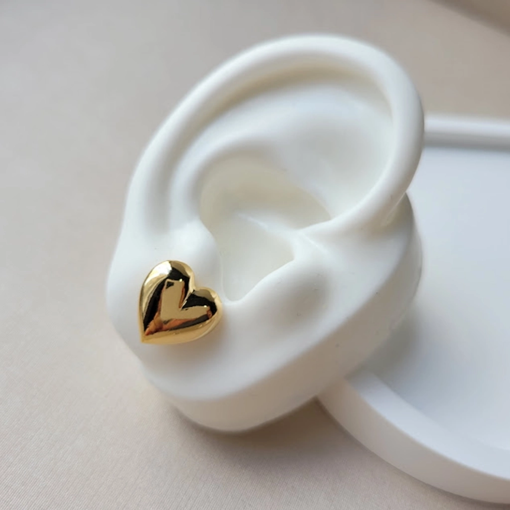 Brinco Coração Abaloado Liso – Banhado a Ouro 18K