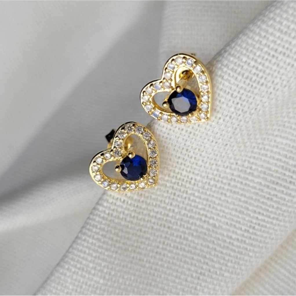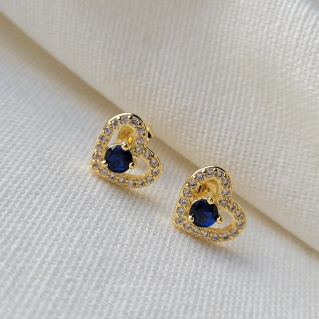 Brinco Coração Cravejado com Ponto de Luz Azul – Banhado a Ouro 18K