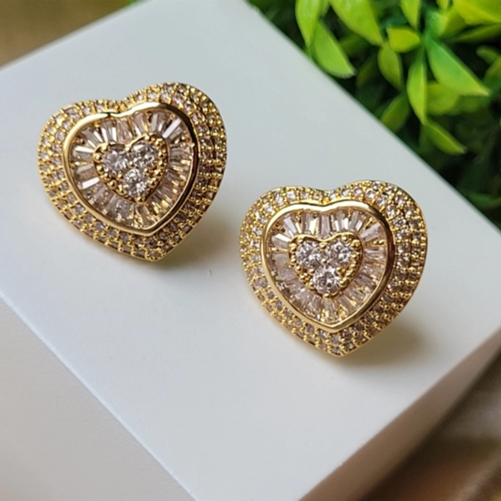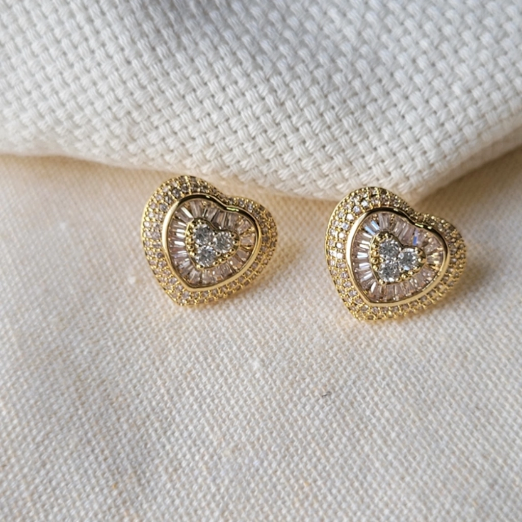 Brinco Coração Cravejado Cristal – Banhado a Ouro 18K