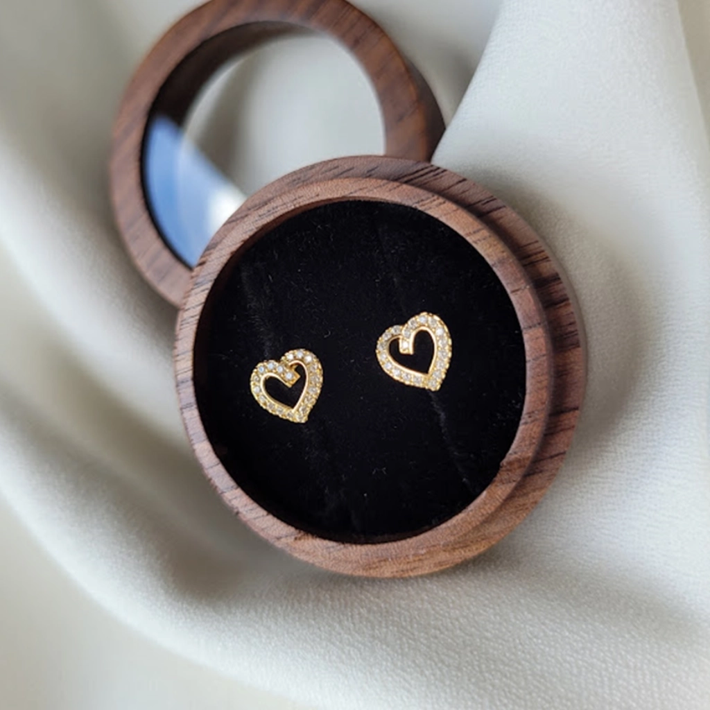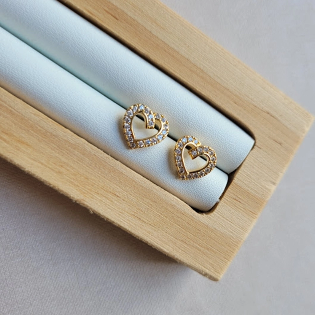 Brinco Coração Cravejado Cristal – Banhado a Ouro 18K
