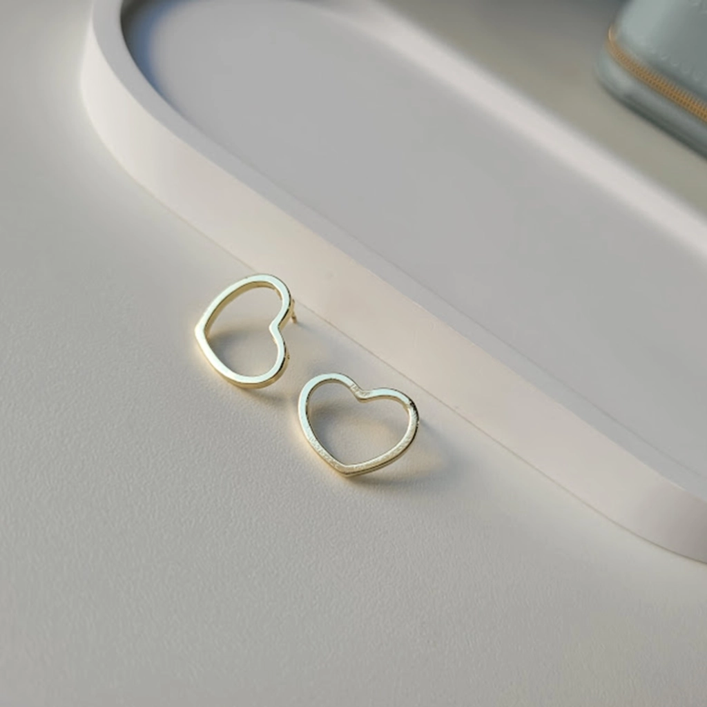 Brinco Coração Liso Vazado – Banhado a Ouro 18K