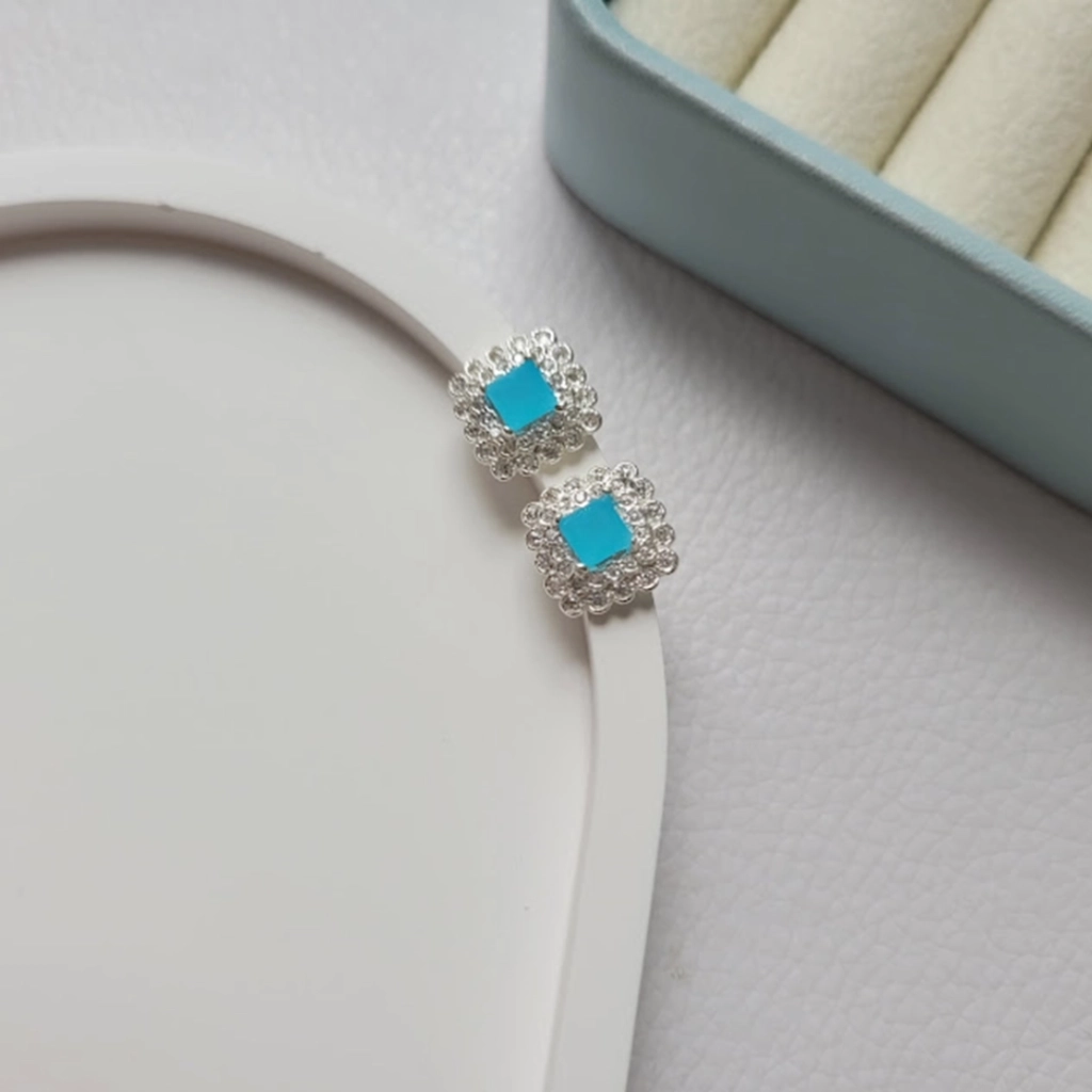 Brinco Cravejado e Círculo Azul Claro – Prata 925