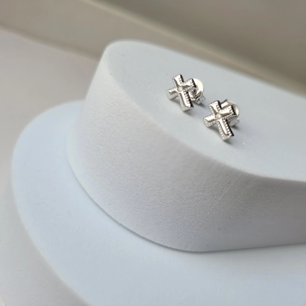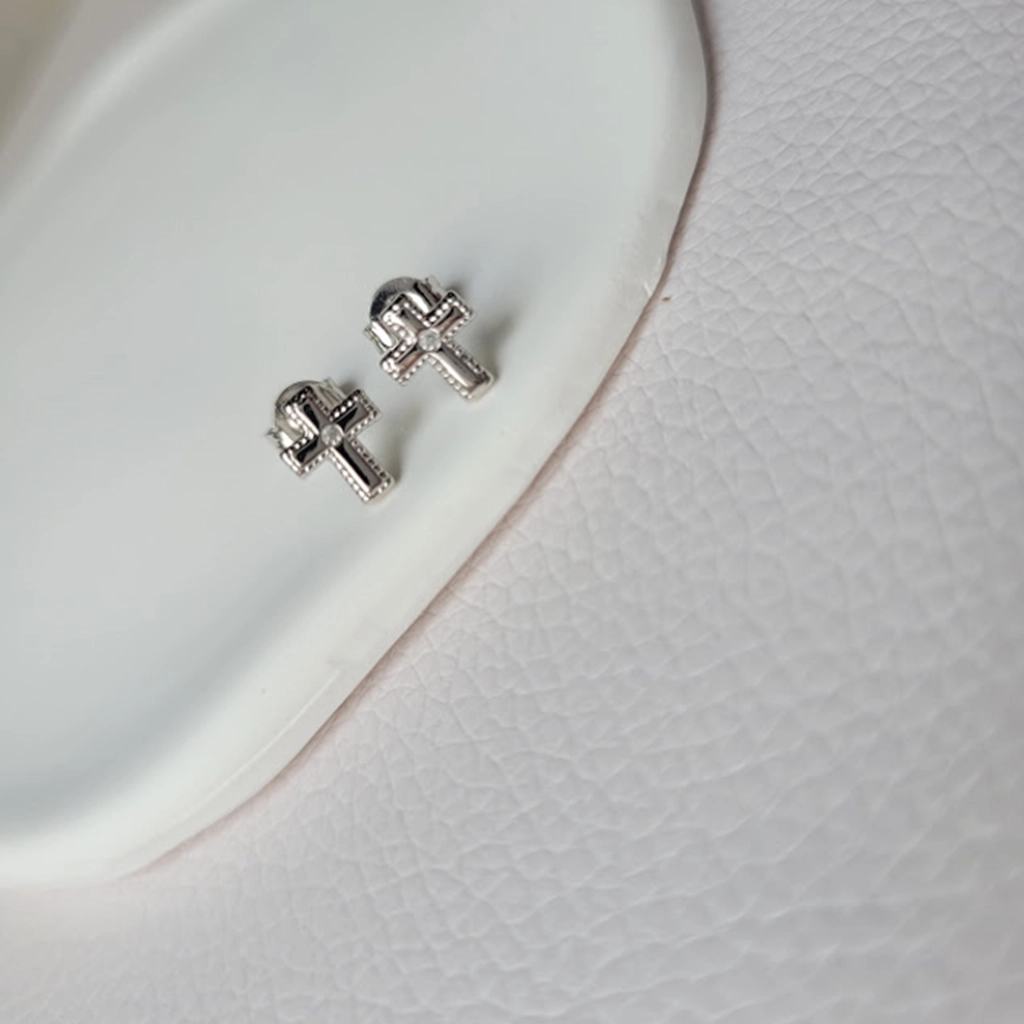 Brinco Cruz com Ponto de Luz Cristal – Ródio Branco