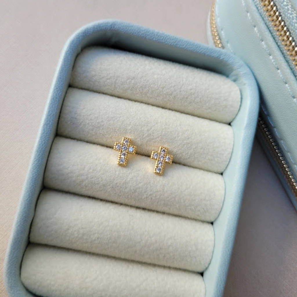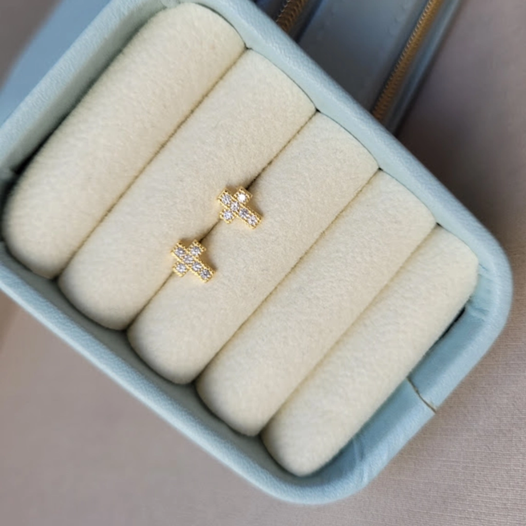 Brinco Cruz Cristal – Banhado a Ouro 18K