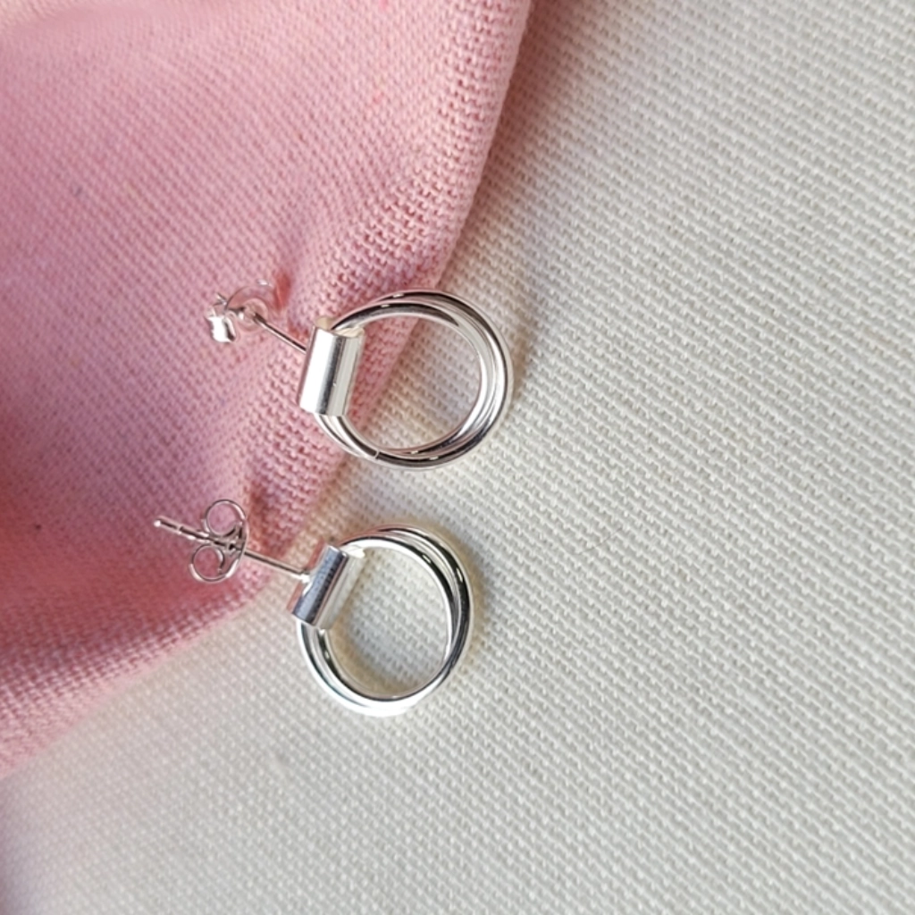 Brinco Duplo Círculo – Folheado a Prata