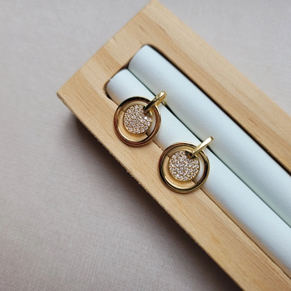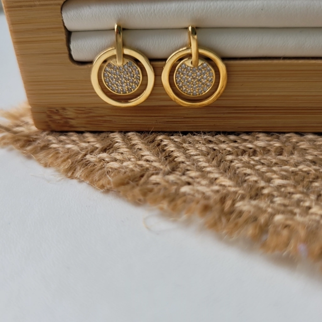Brinco Duplo Círculo Cristal – Banhado a Ouro 18K