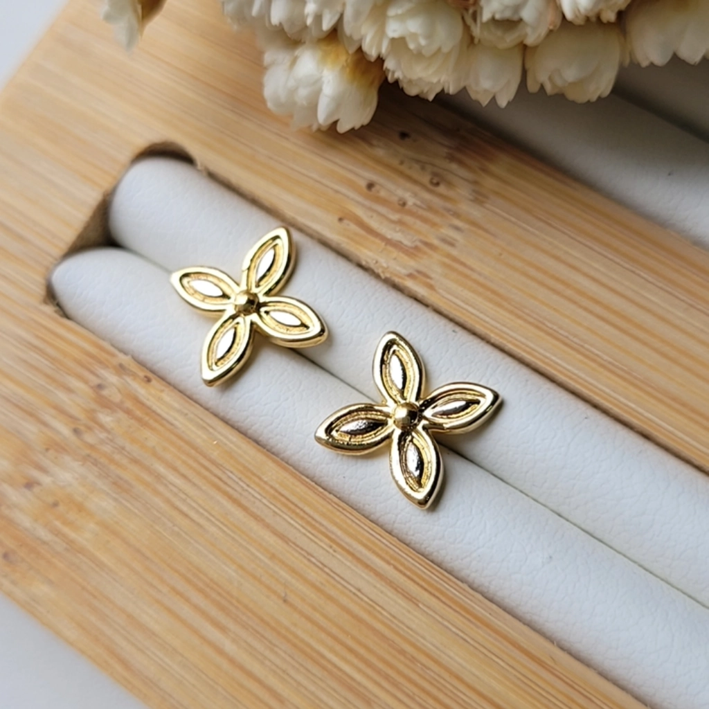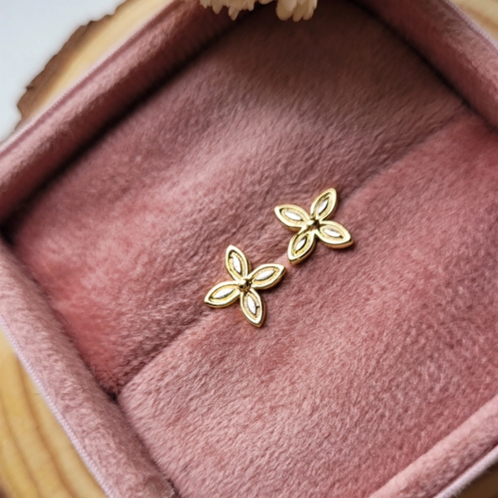 Brinco Flor com Caneta de Ródio – Banhado a Ouro 18K