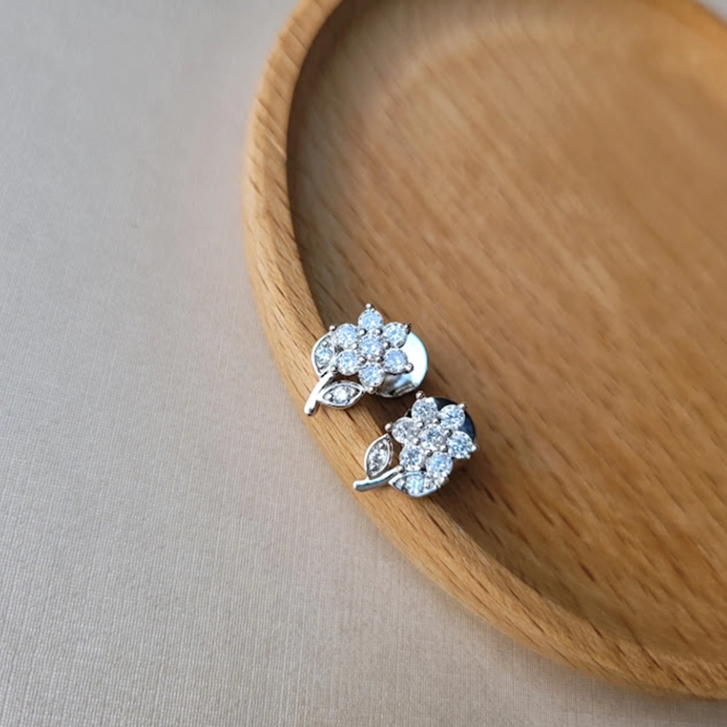 Brinco Flor Cristal – Ródio Branco