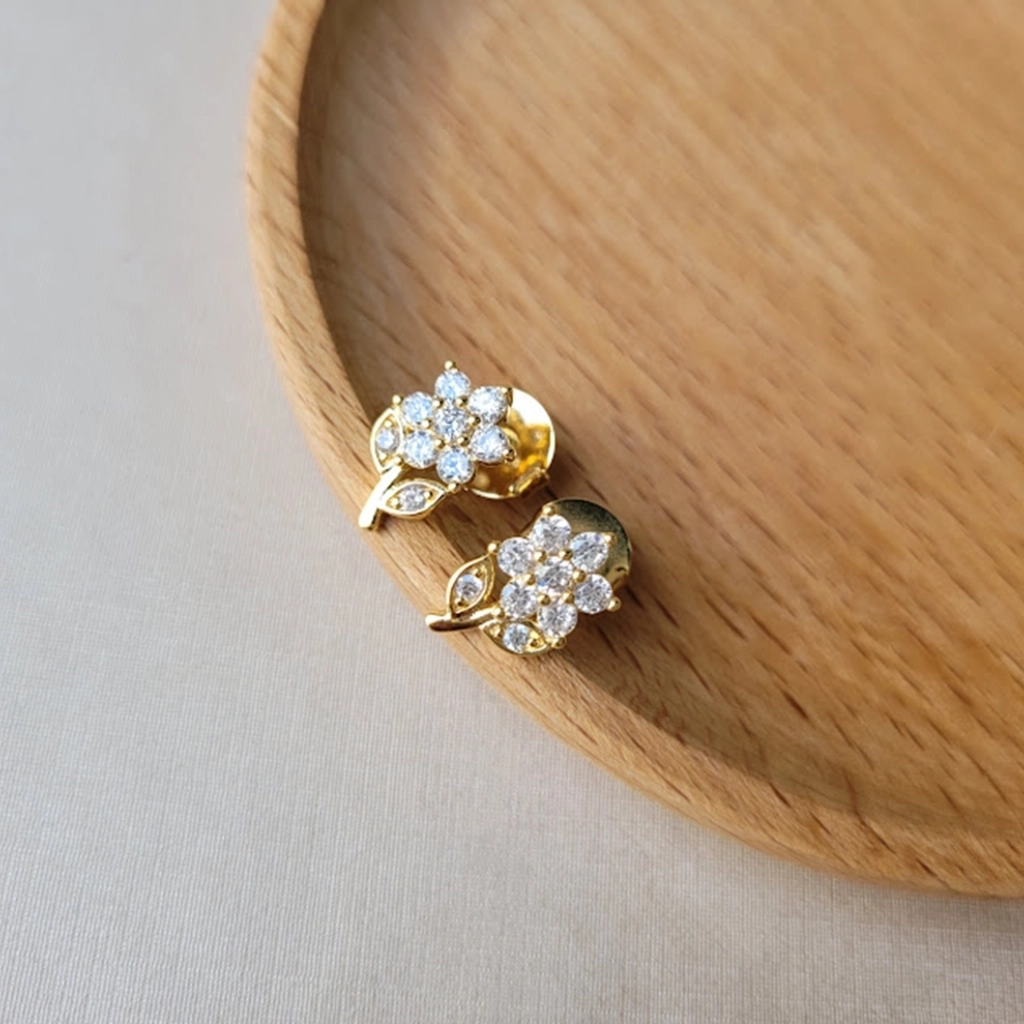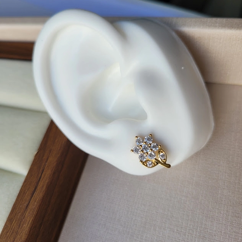Brinco Flor Cristal – Banhado a Ouro 18K
