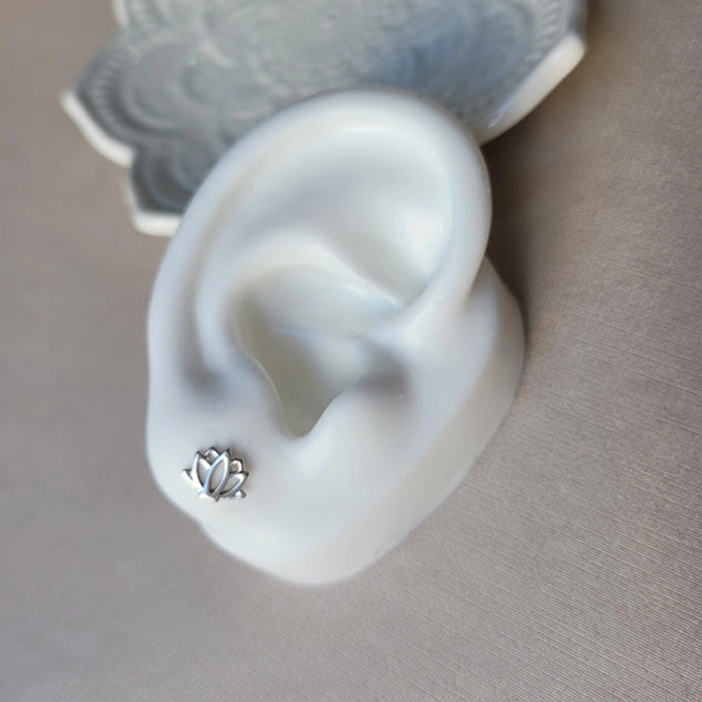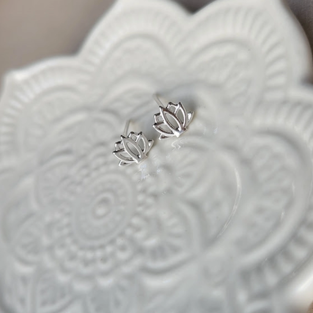 Brinco Flor de Lótus Vazada – Ródio Branco