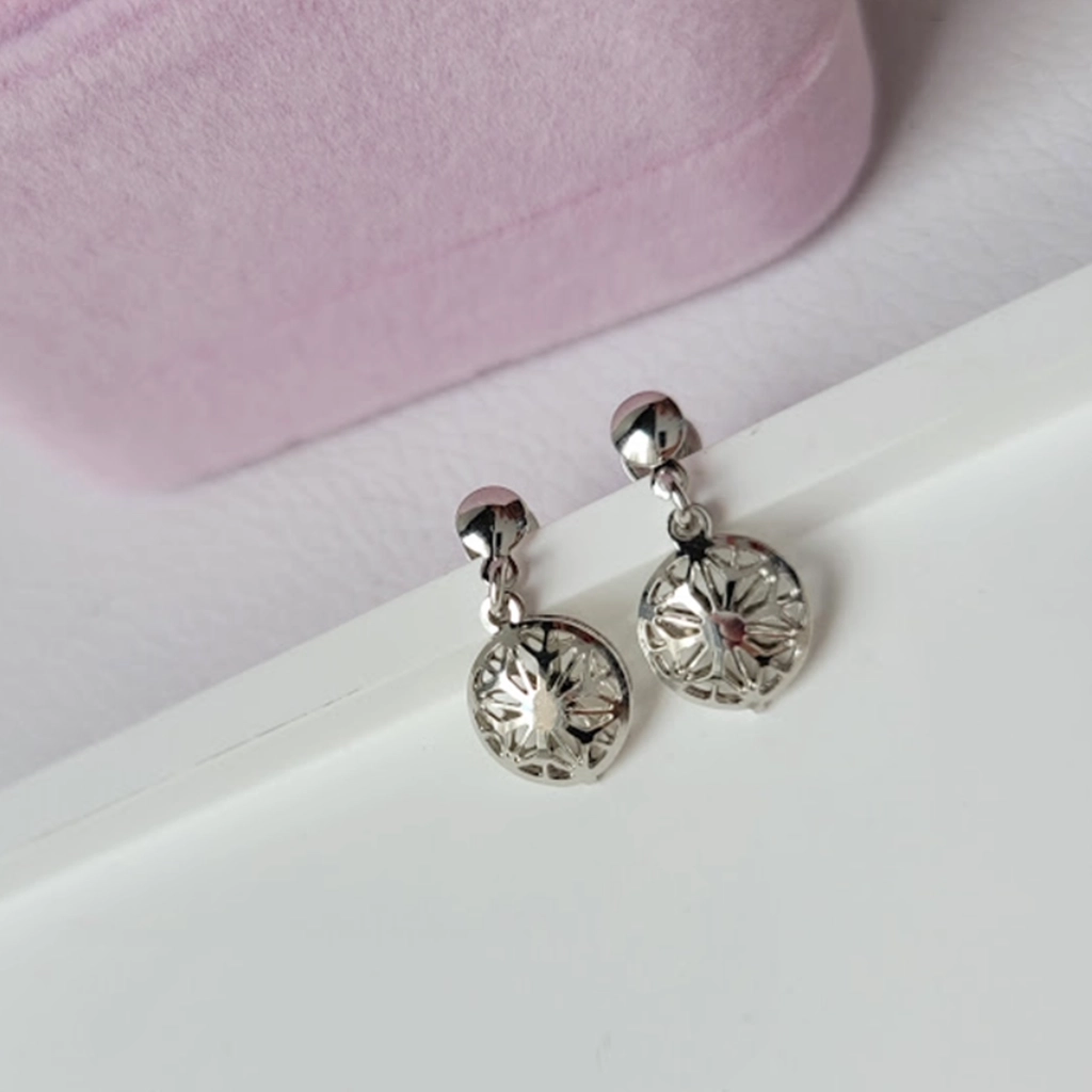 Brinco Flor Vazado – Ródio Branco