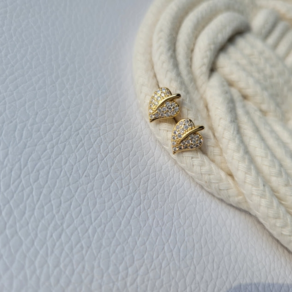 Brinco Folha Cristal – Banhado a Ouro 18K