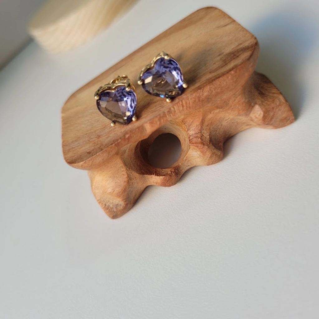 Brinco Fusion Coração Lilás – Banhado a Ouro 18K