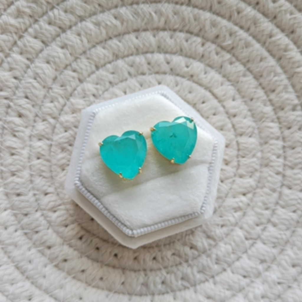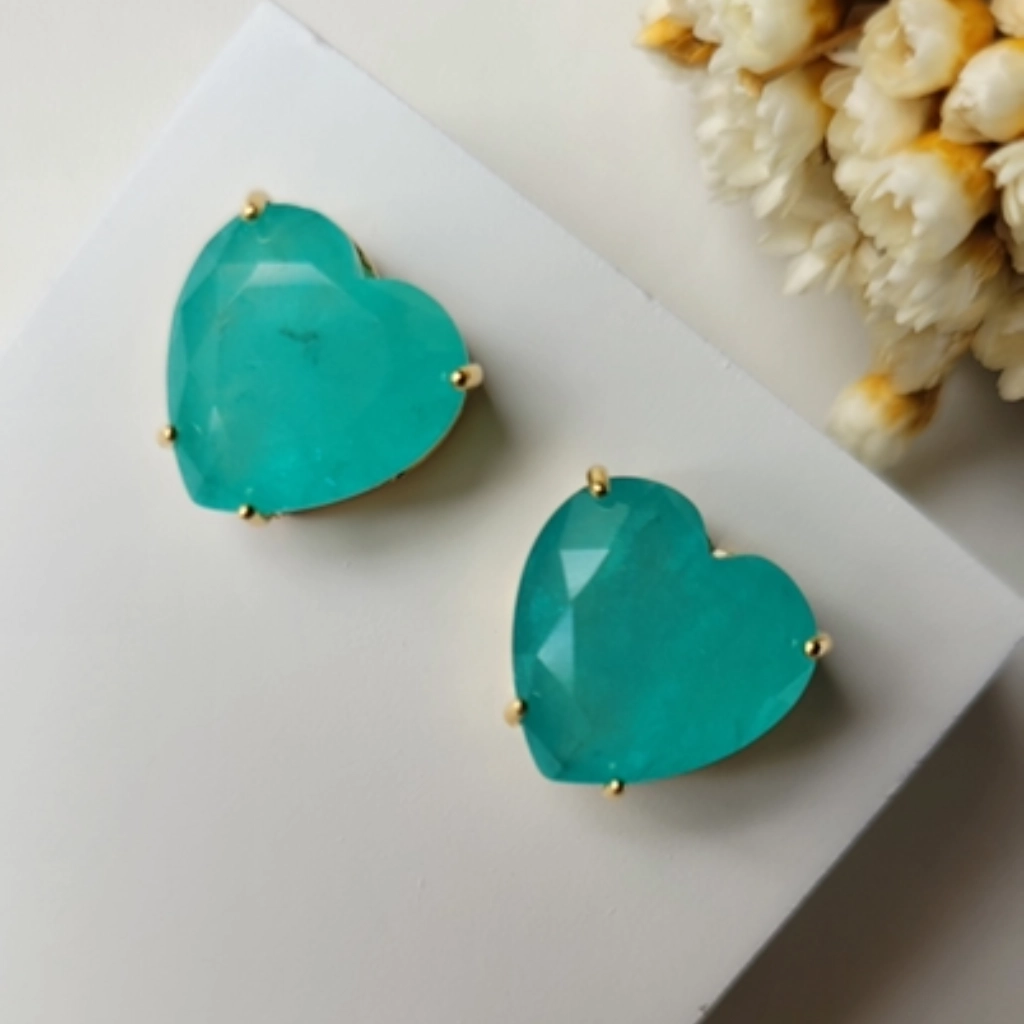 Brinco Fusion Coração Turmalina Azul – Banhado a Ouro 18K