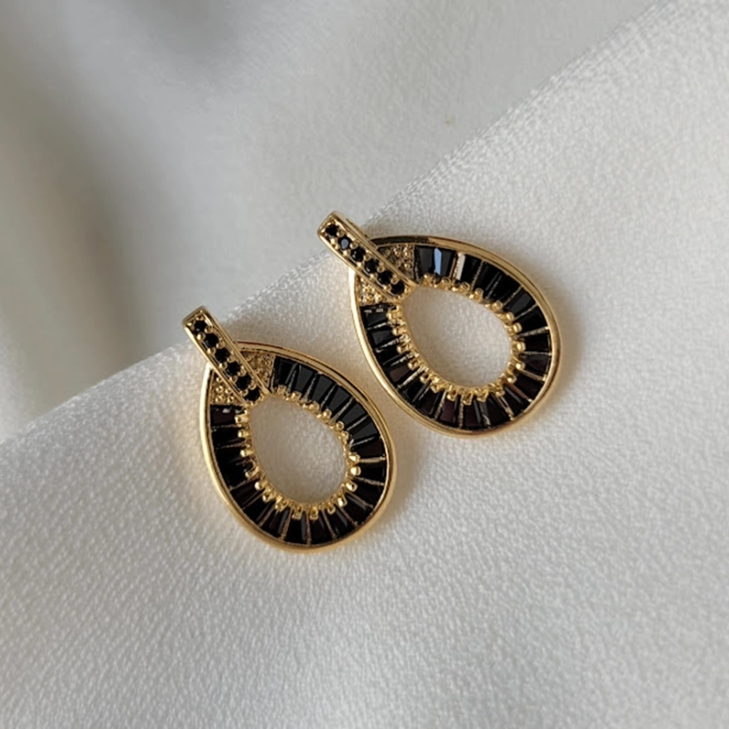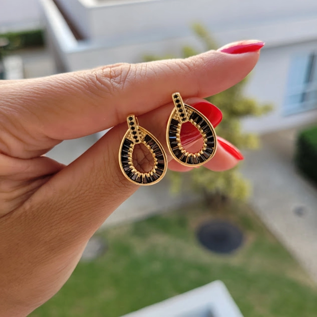 Brinco Gota Cravejado Preto – Banhado a Ouro 18K
