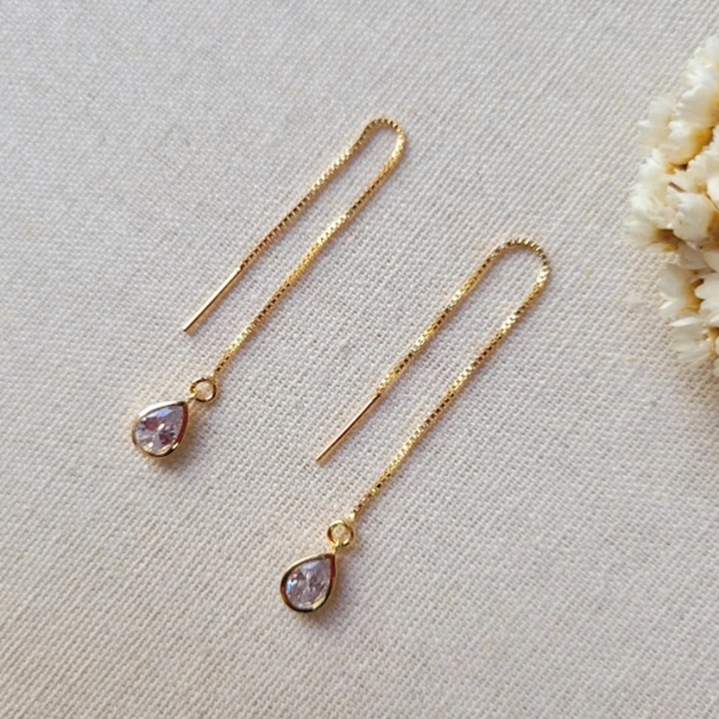 Brinco Gota Cristal – Banhado a Ouro 18K