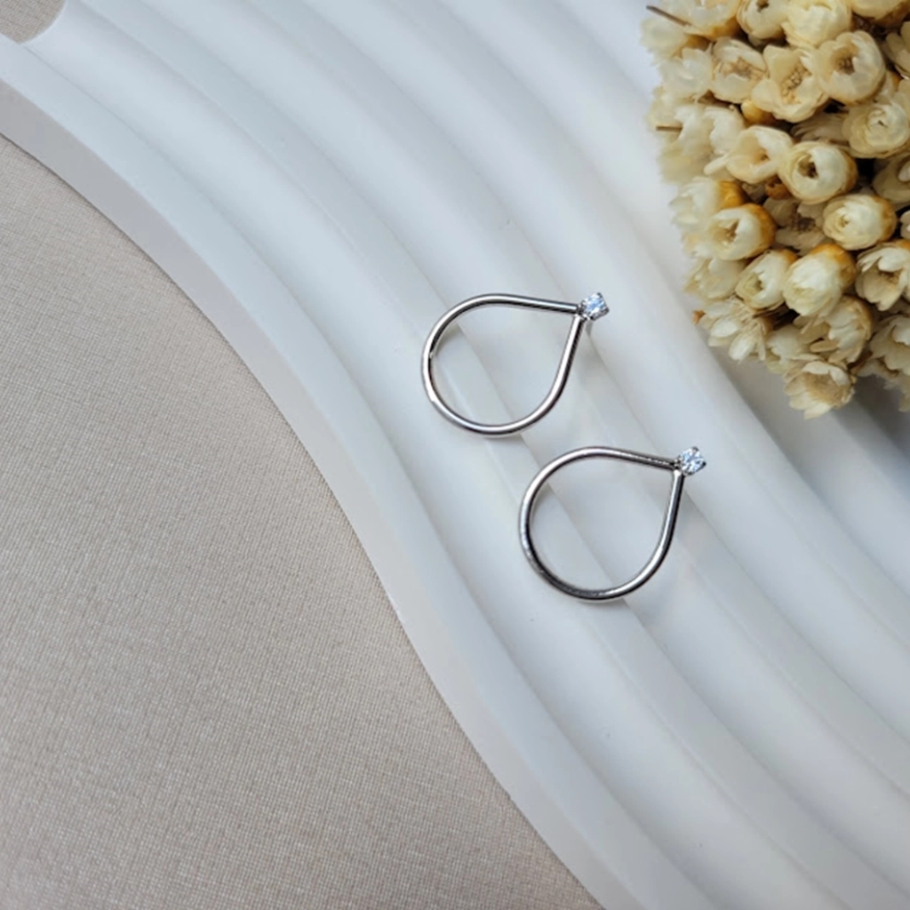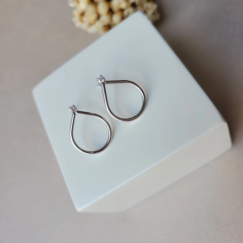 Brinco Gota Vazada com Ponto de Luz – Ródio Branco