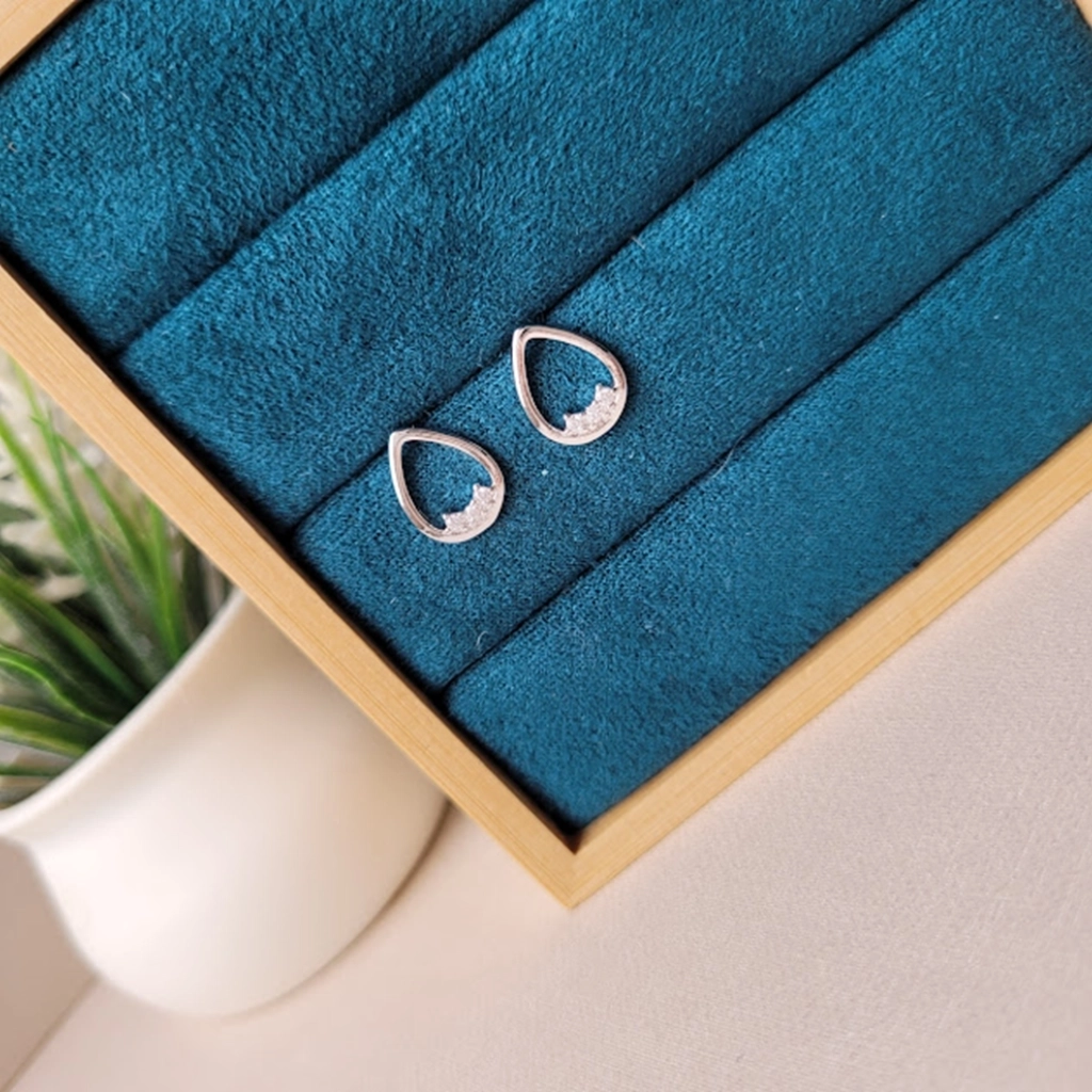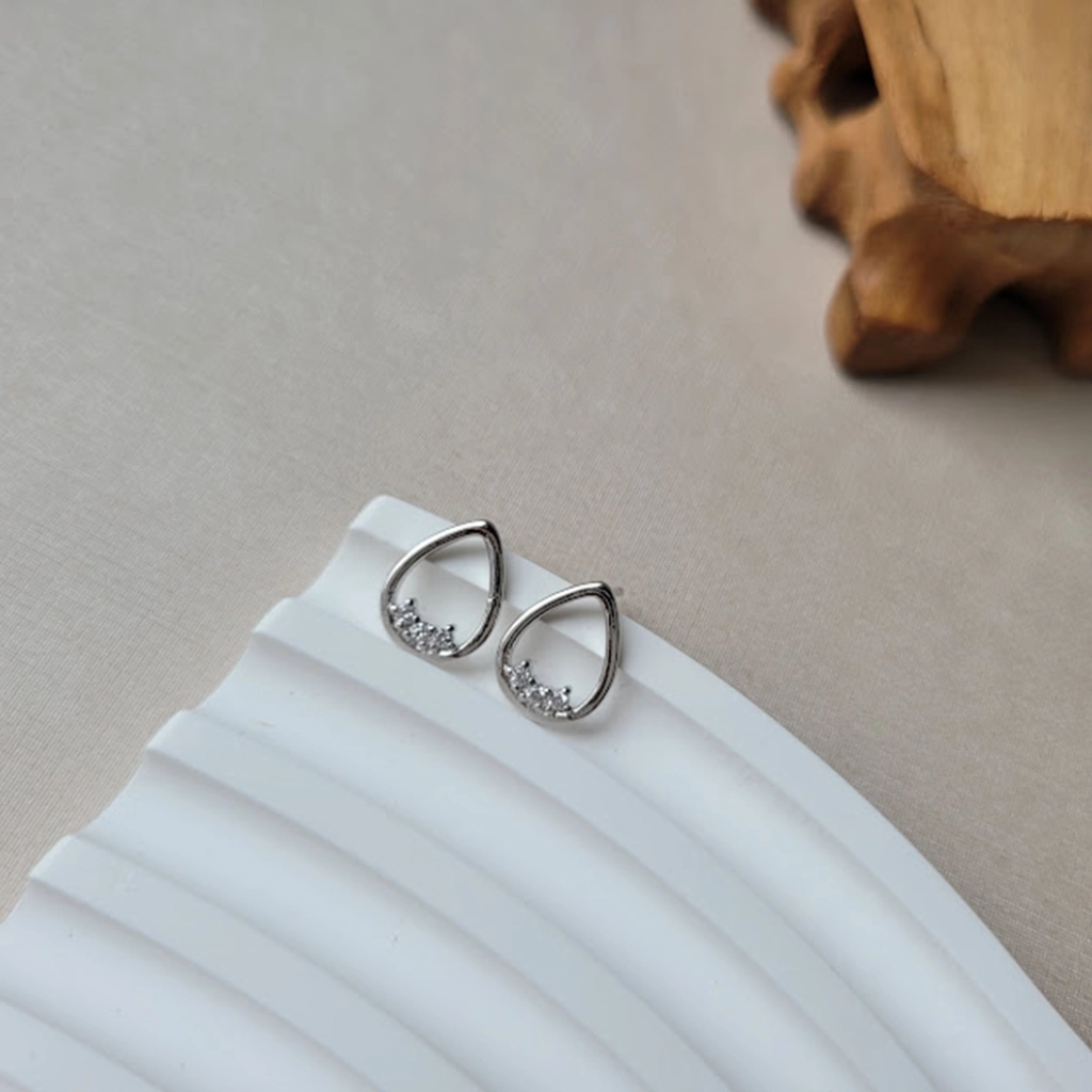 Brinco Gota Vazada com Pontos de Luz – Ródio Branco