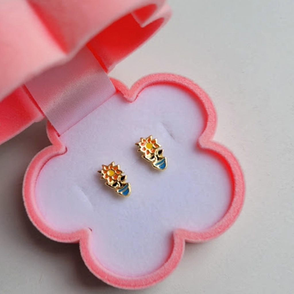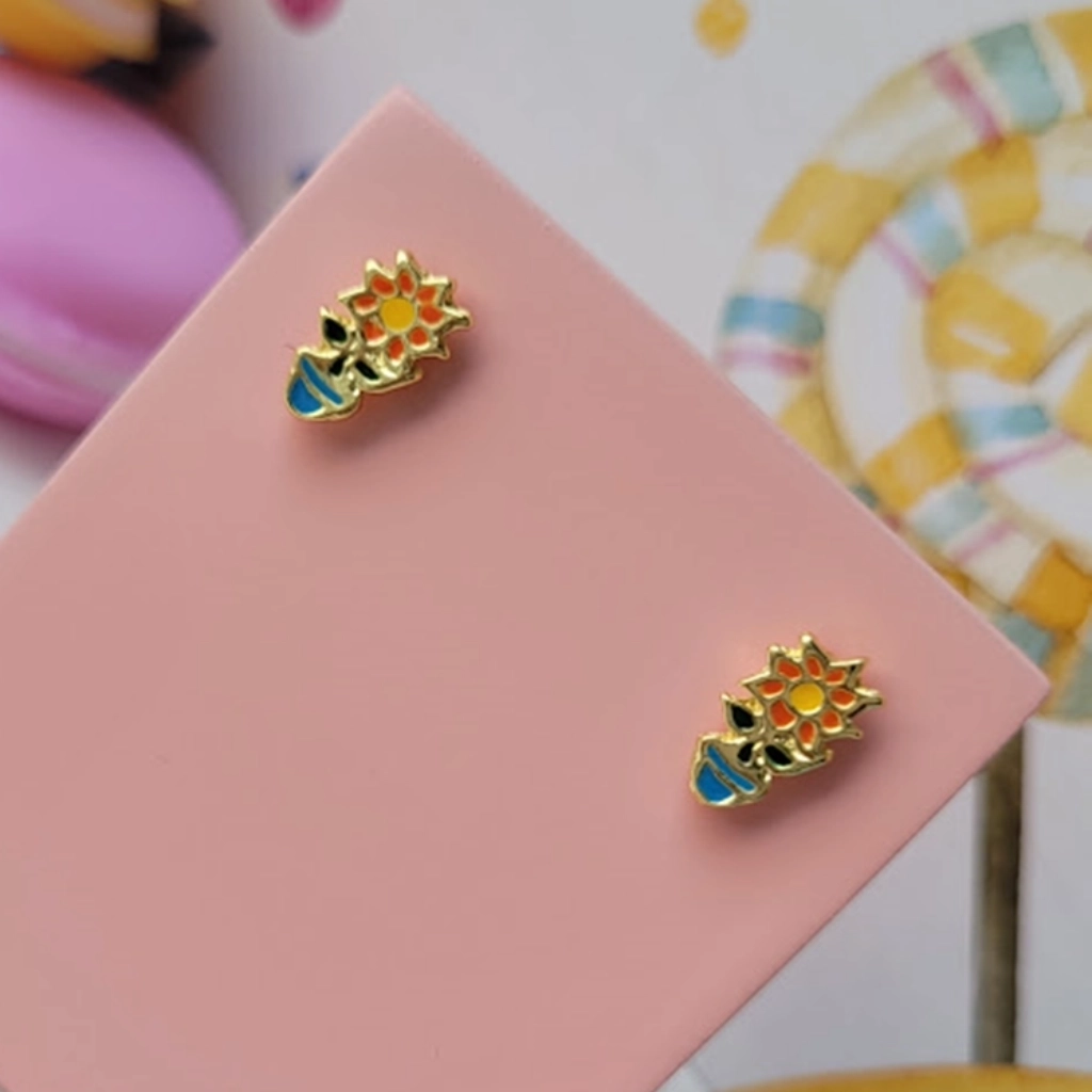 Brinco Infantil Flor Colorida – Banhado a Ouro 18K