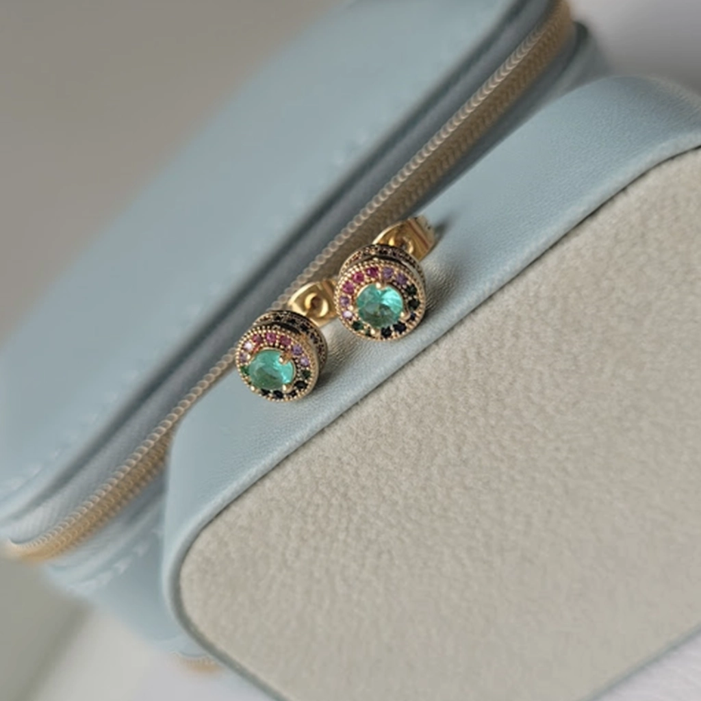 Brinco Pedra Fusion Turmalina e Cravejado Colorida – Banhado a Ouro 18K