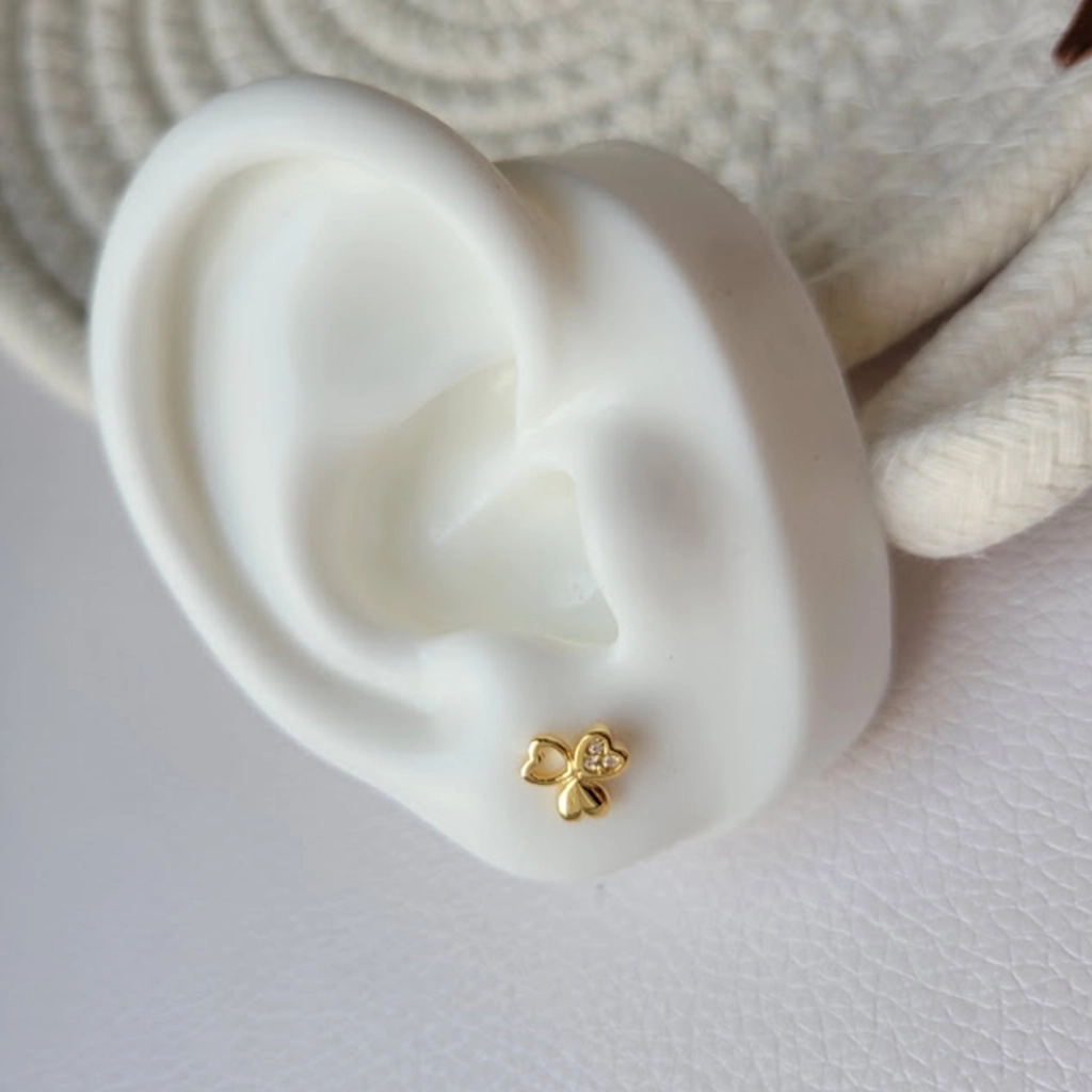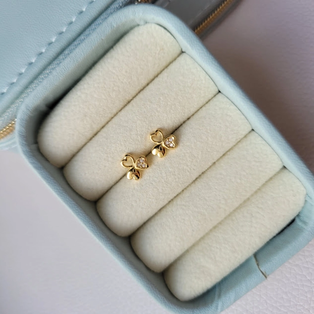 Brinco Trevo Coração Cristal – Banhado a Ouro 18K
