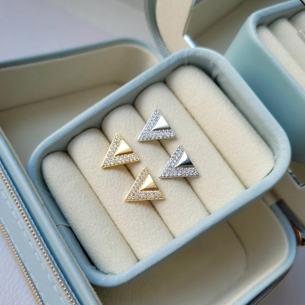 Brinco Triângulo Cristal – Banhado a Ouro 18K