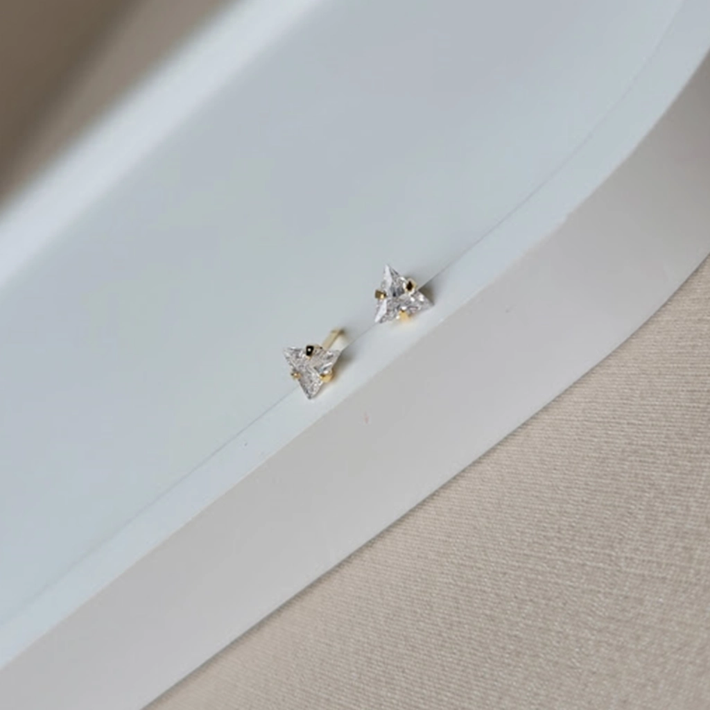Brinco Triângulo Cristal – Banhado a Ouro 18K